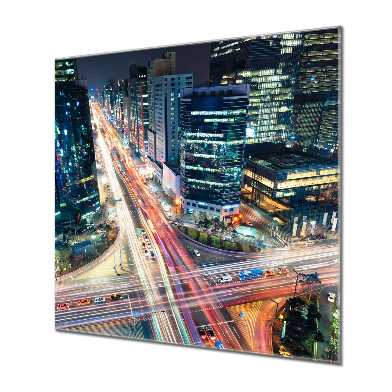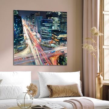 Quadratisches Wandbild aus Glas Gangnam Bei Nacht