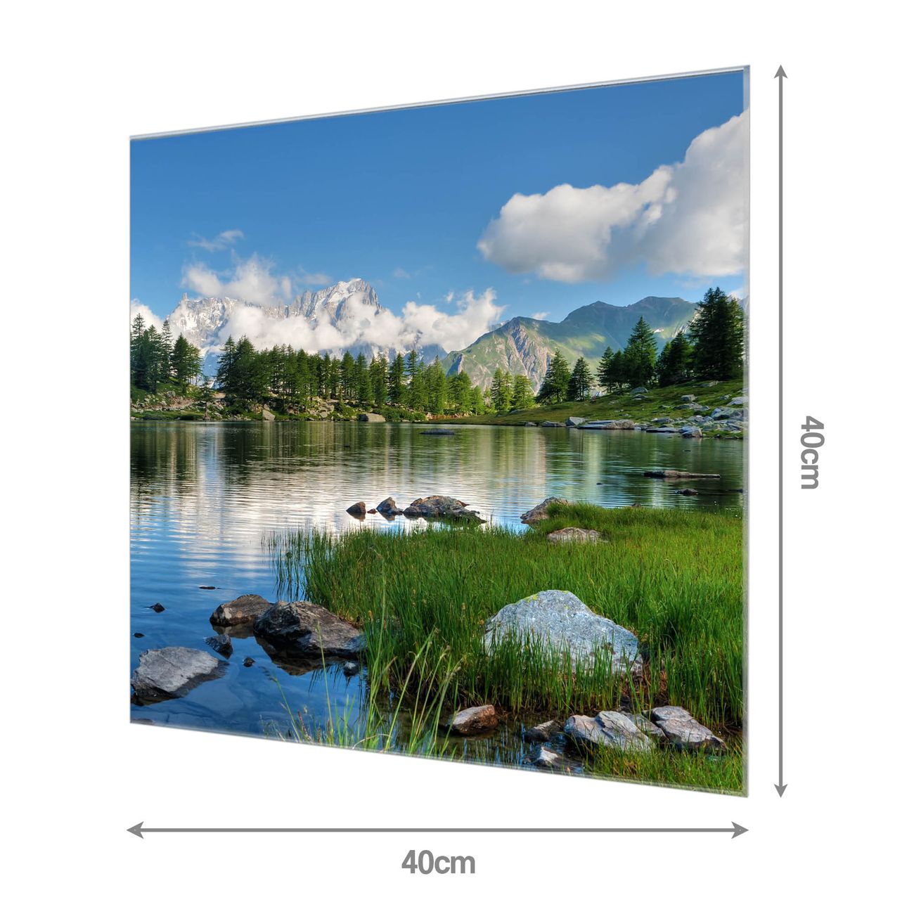 Unsere einzigartigen Glasbilder im Querformat von banjado mit Motiv Gebirgssee sind der absolute Hingucker! Unsere Banjado Glasbilder sind sehr begehrt, weil sie top verarbeitet sind und sich ganz leicht montieren lassen. Schon mit wenigen Handgriffen hängen sie an der Wand und strahlen mit höchster brillianz. Durch die Ramenlose Herstellung schwebt das Echtglasbild förmlich an der Wand. Das Motiv erscheint besonders ausdrucksstark und hochwertig und ist hinter dem Echtglas geschützt.