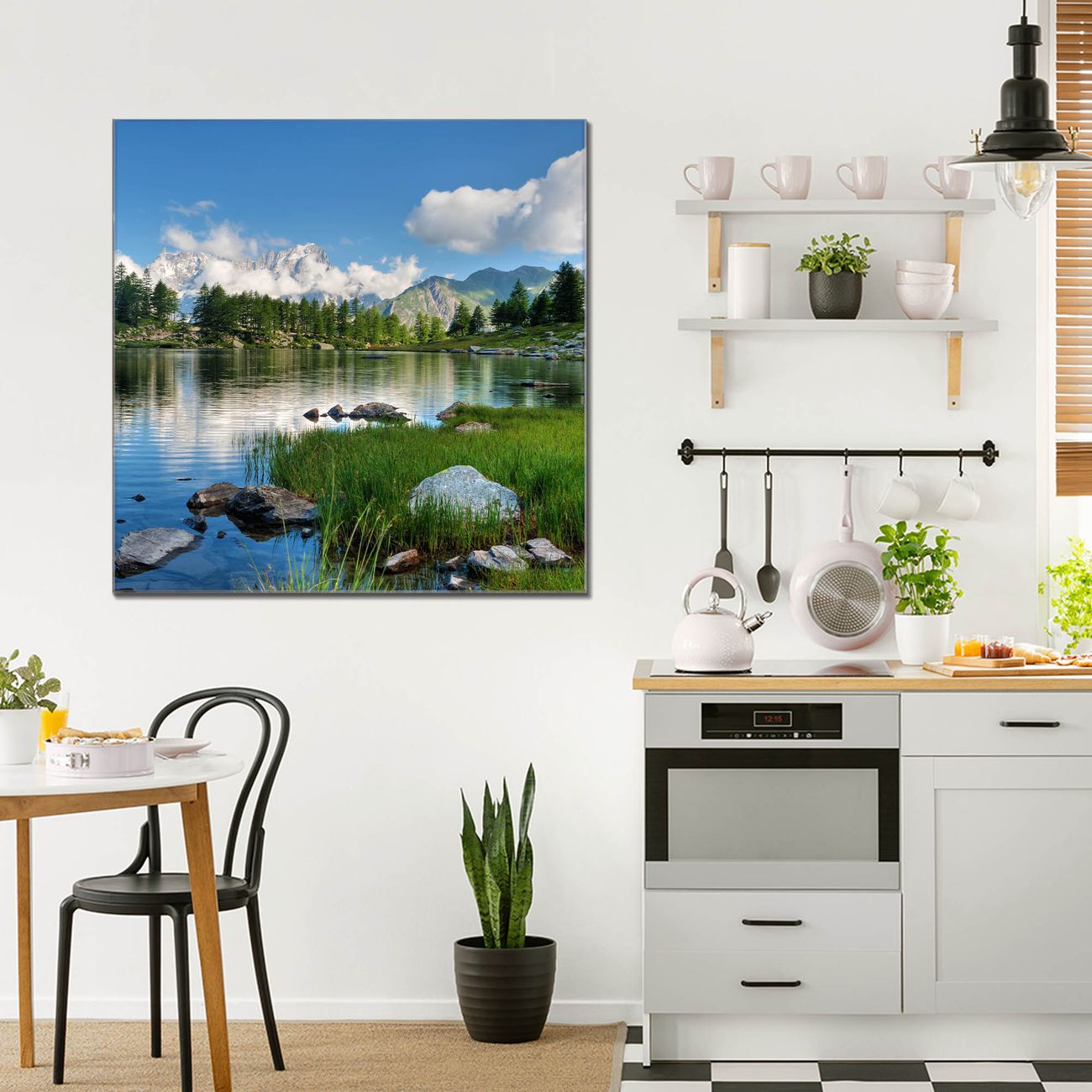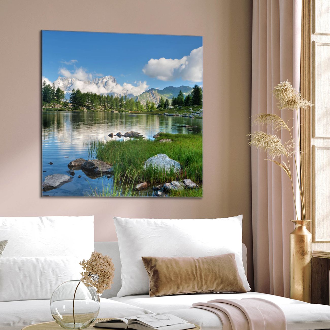 Unsere einzigartigen Glasbilder im Querformat von banjado mit Motiv Gebirgssee sind der absolute Hingucker! Unsere Banjado Glasbilder sind sehr begehrt, weil sie top verarbeitet sind und sich ganz leicht montieren lassen. Schon mit wenigen Handgriffen hängen sie an der Wand und strahlen mit höchster brillianz. Durch die Ramenlose Herstellung schwebt das Echtglasbild förmlich an der Wand. Das Motiv erscheint besonders ausdrucksstark und hochwertig und ist hinter dem Echtglas geschützt.
