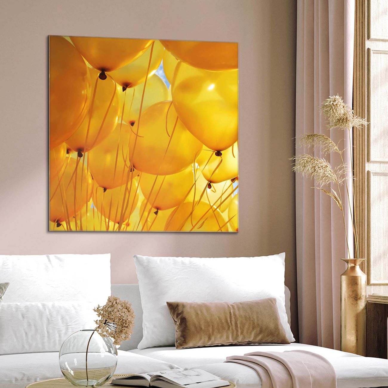 Quadratisches Wandbild aus Glas Gelbe Luftballons