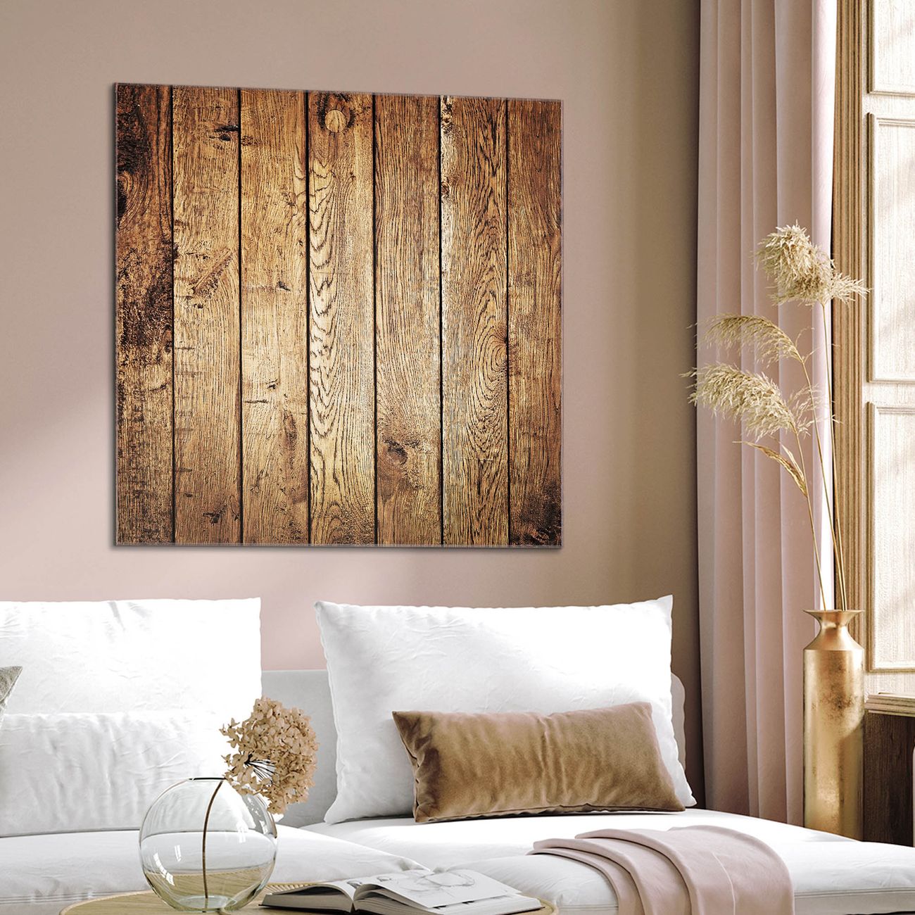 Quadratisches Wandbild aus Glas Geöltes Holz
