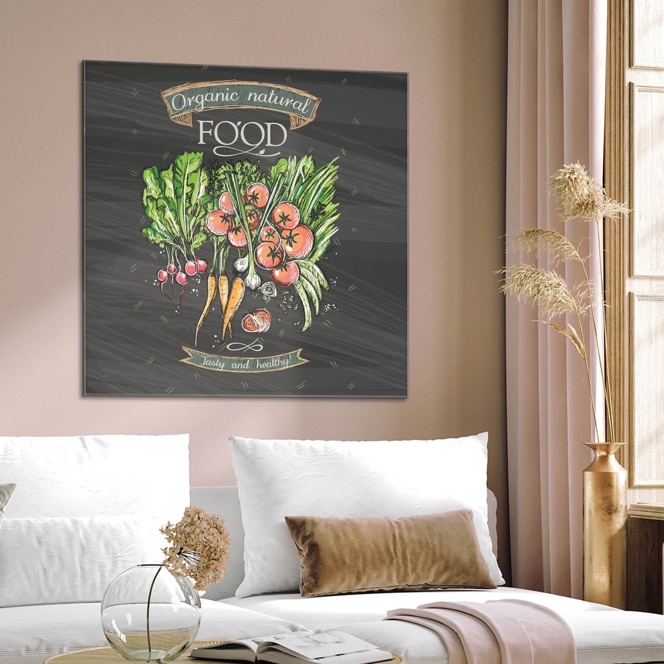 Quadratisches Wandbild aus Glas Gesund Und Lecker