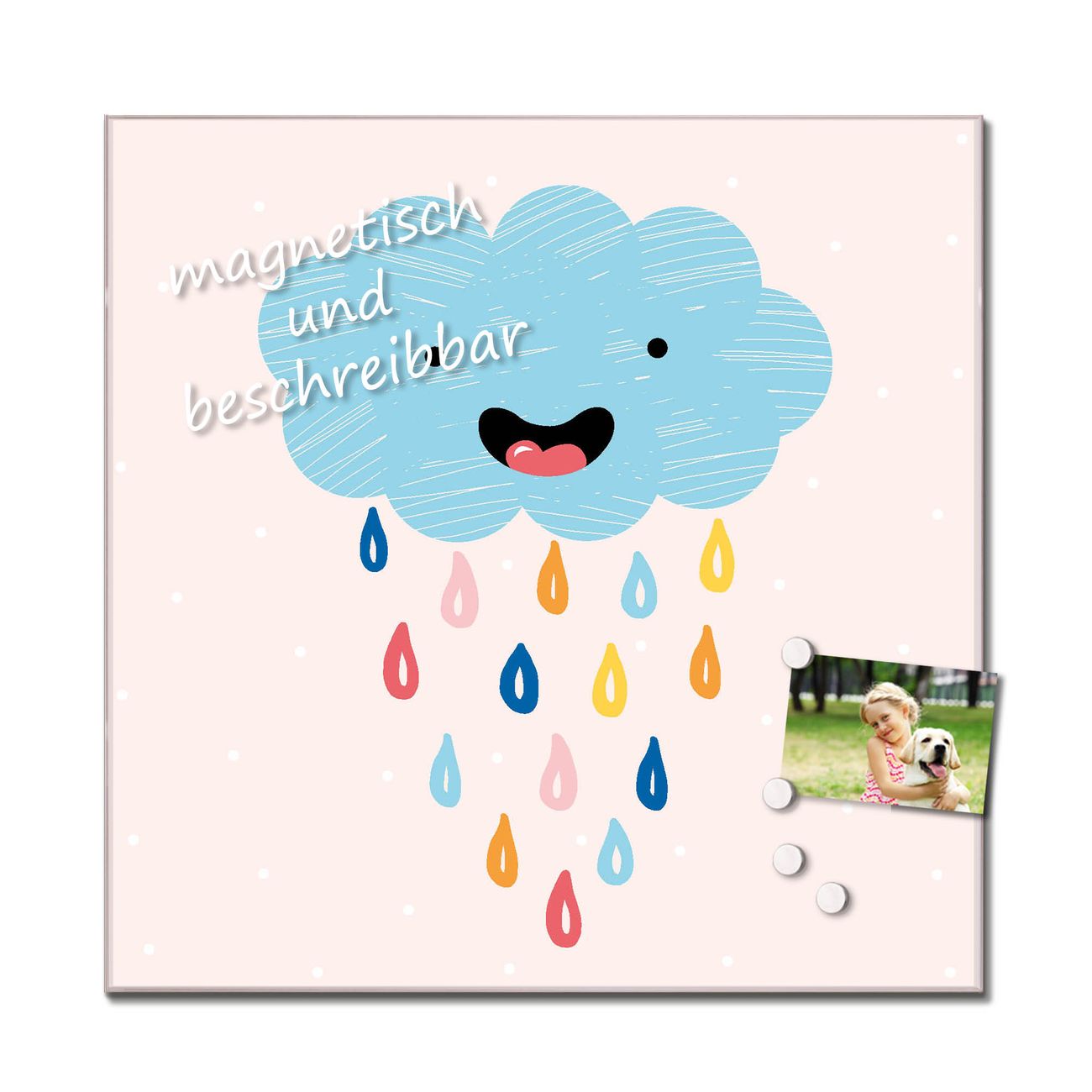 Unsere einzigartigen Glasbilder im Querformat von banjado mit Motiv glückliche Regenwolke sind der absolute Hingucker! Unsere Banjado Glasbilder sind sehr begehrt, weil sie top verarbeitet sind und sich ganz leicht montieren lassen. Schon mit wenigen Handgriffen hängen sie an der Wand und strahlen mit höchster brillianz. Durch die Ramenlose Herstellung schwebt das Echtglasbild förmlich an der Wand. Das Motiv erscheint besonders ausdrucksstark und hochwertig und ist hinter dem Echtglas geschützt.
