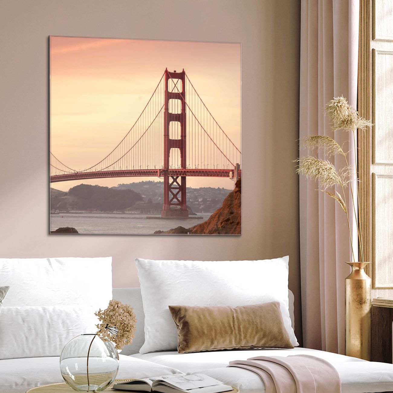 Quadratisches Wandbild aus Glas Golden Gate Bridge 2
