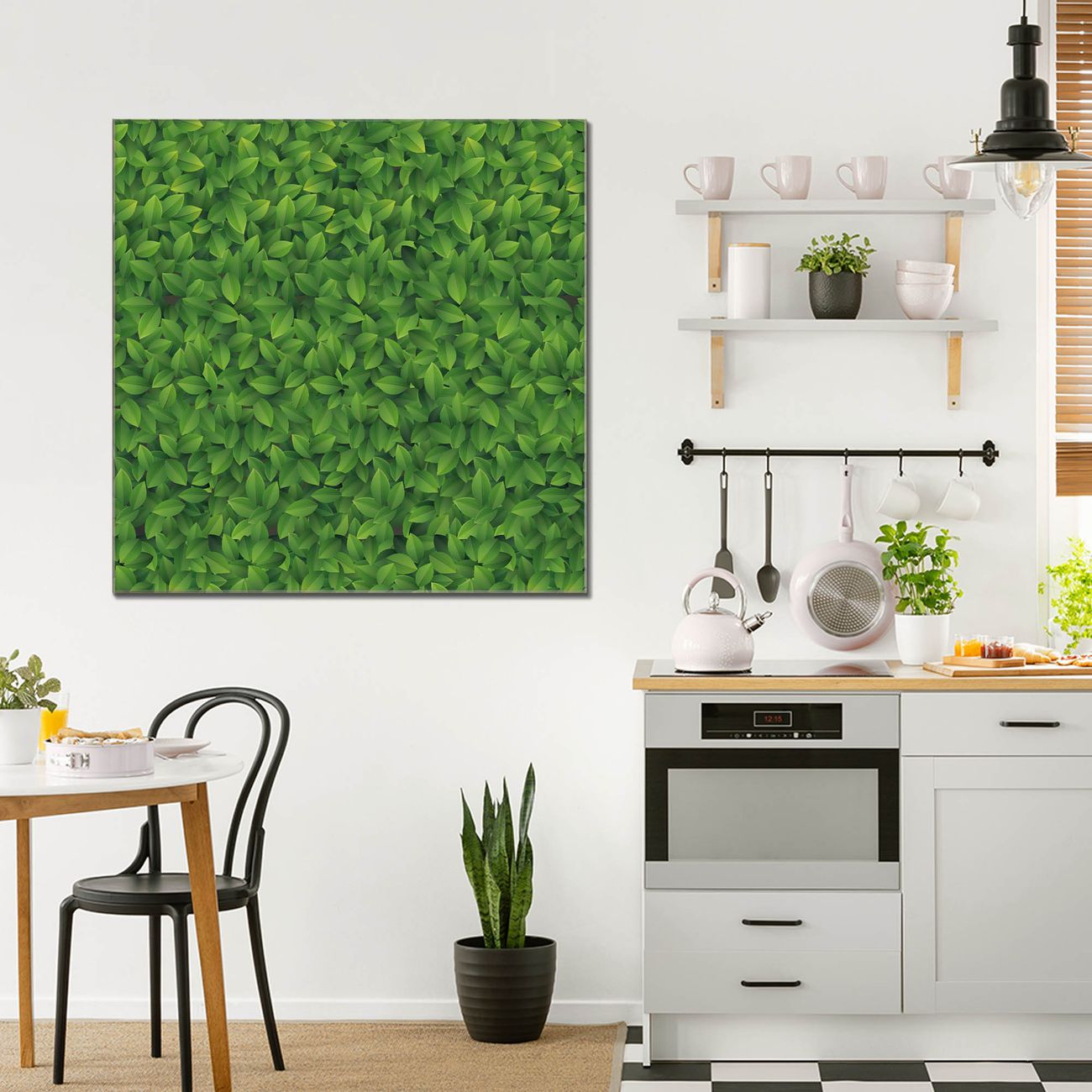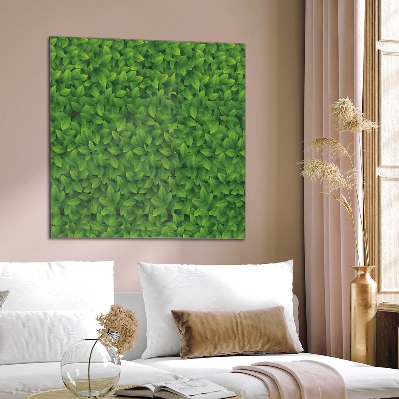 Quadratisches Wandbild aus Glas Grüne Blätter