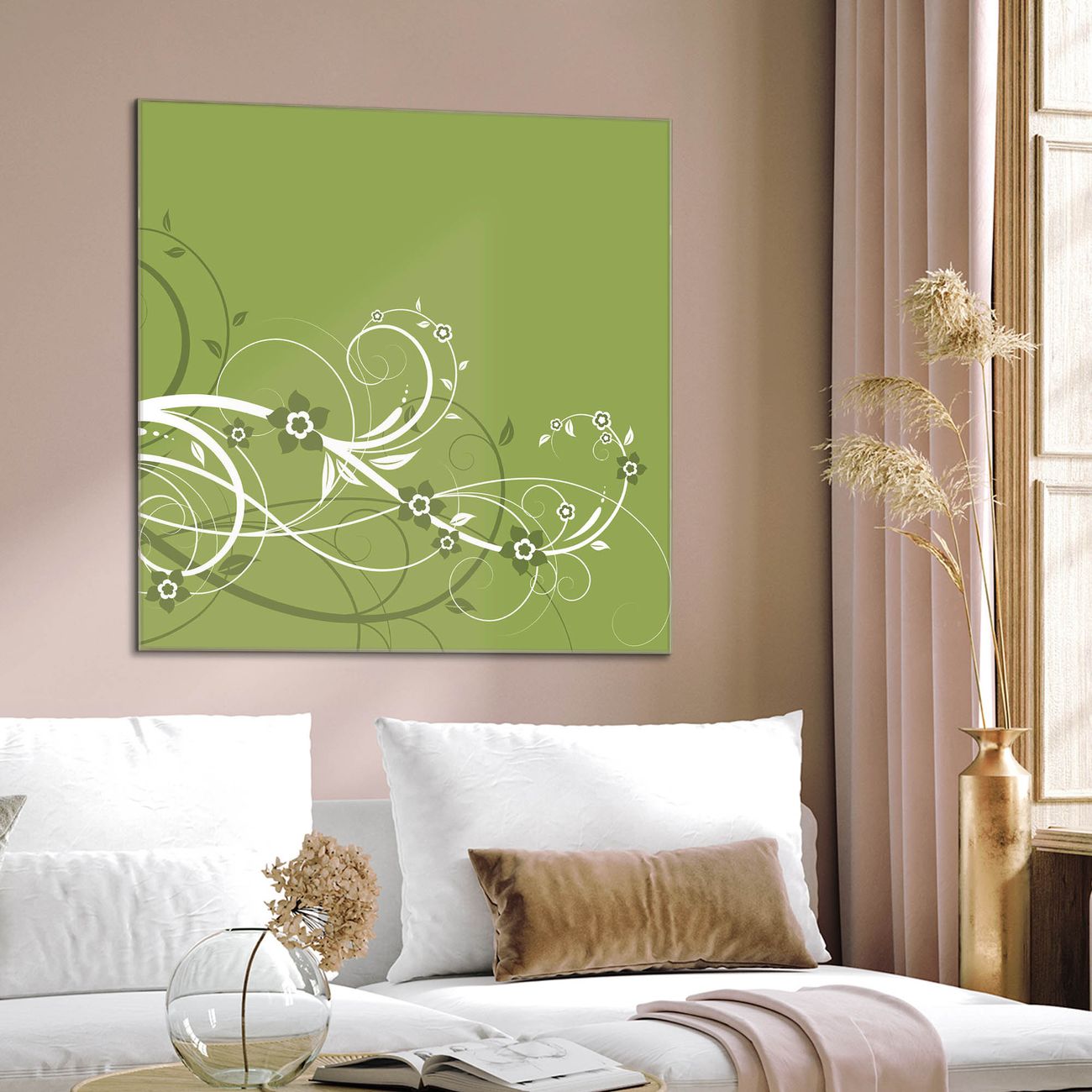 Quadratisches Wandbild aus Glas Grüne Blüten