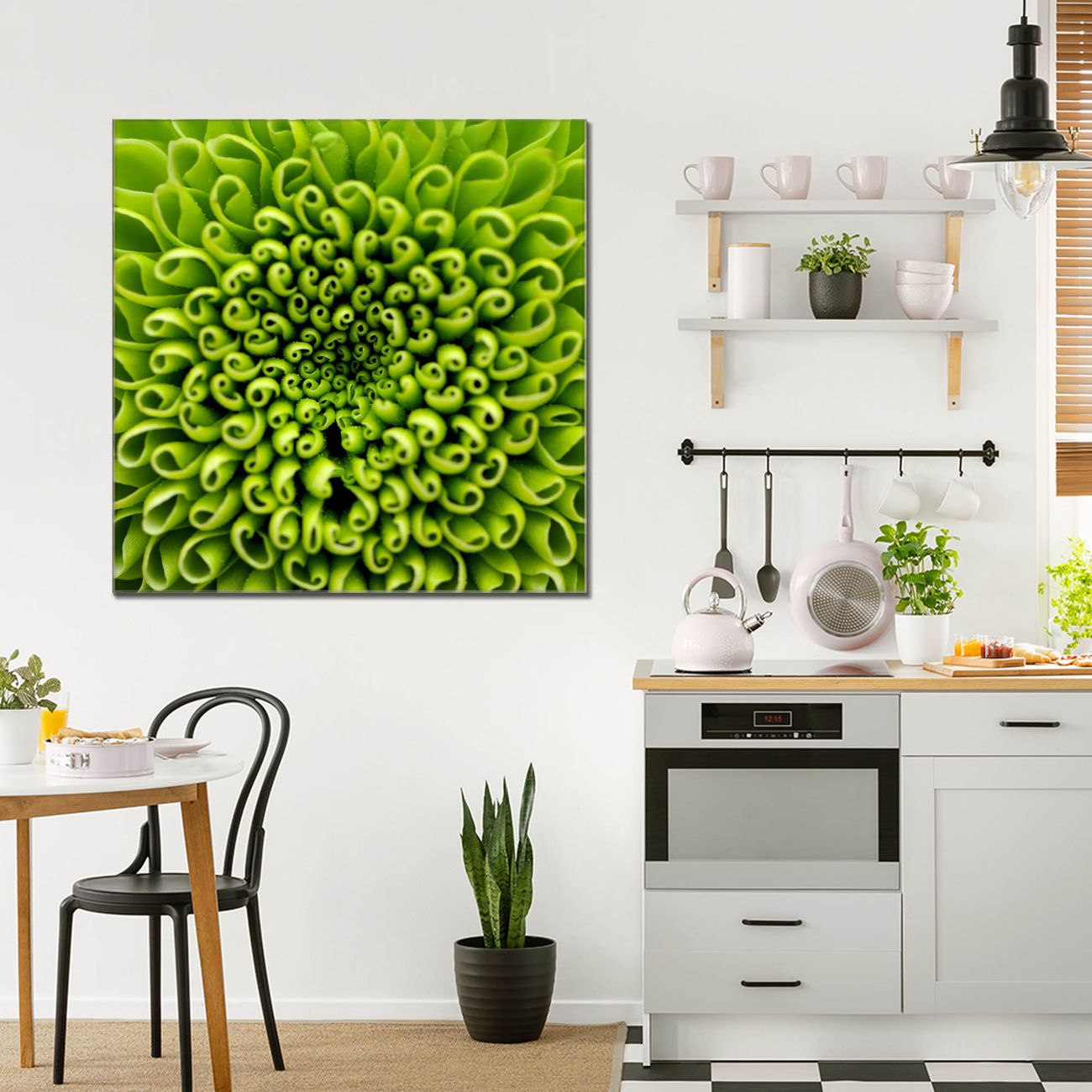 Quadratisches Wandbild aus Glas Grüne Chrysantheme