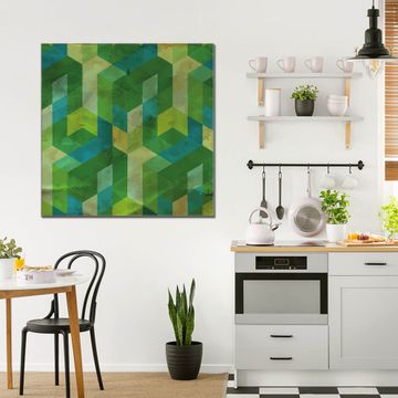 Quadratisches Wandbild aus Glas Grüne Würfel