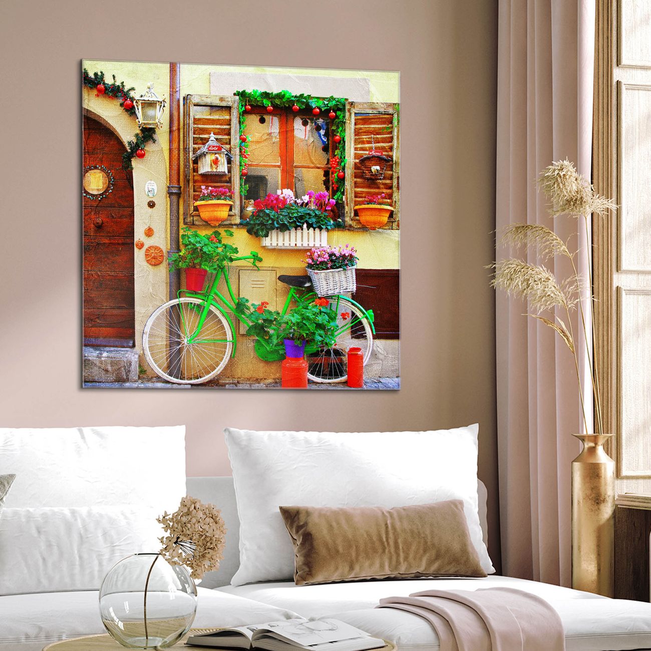 Quadratisches Wandbild aus Glas Grünes Fahrrad