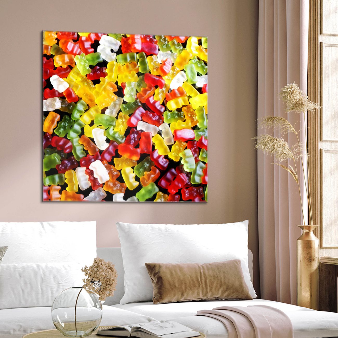 Quadratisches Wandbild aus Glas Gummibaerchen