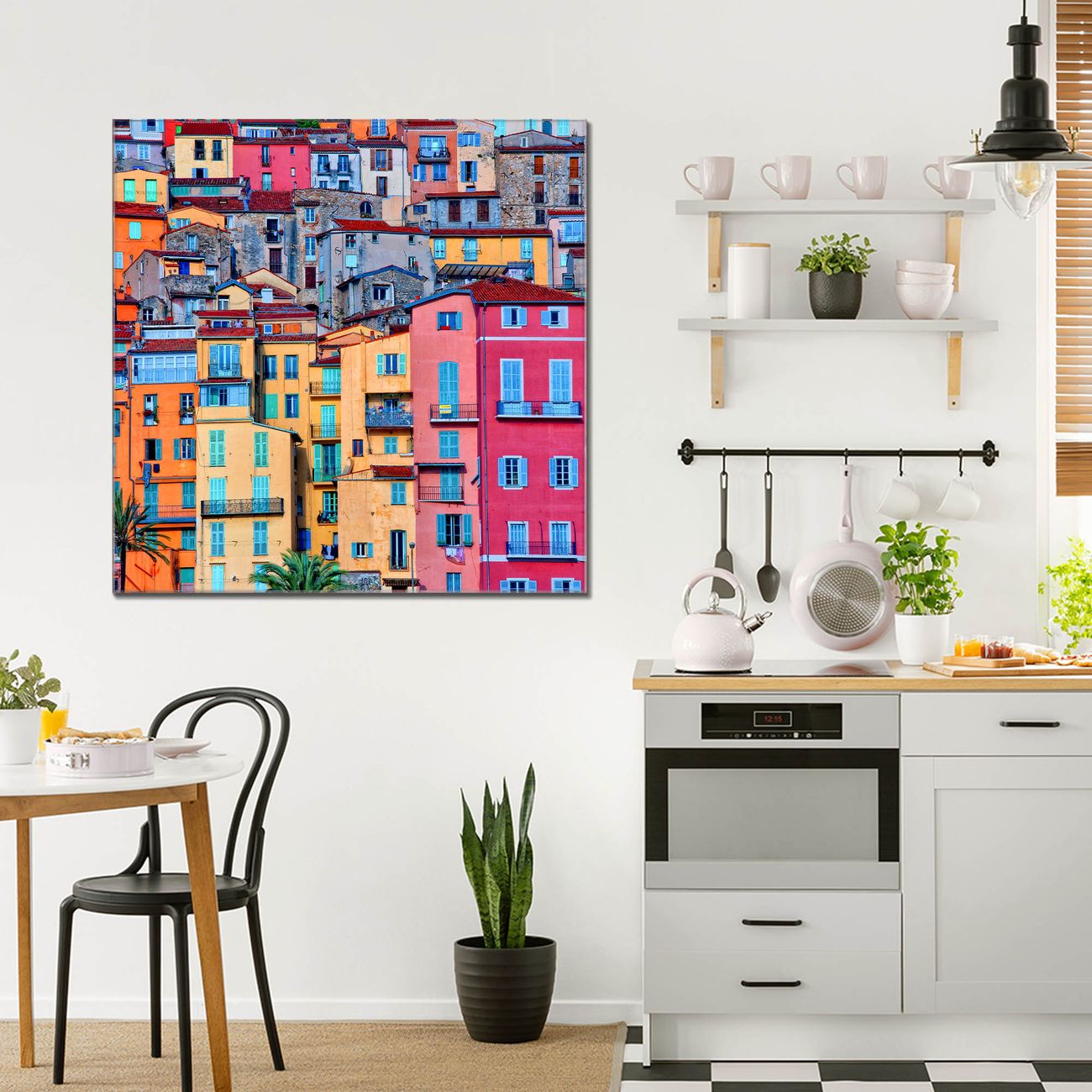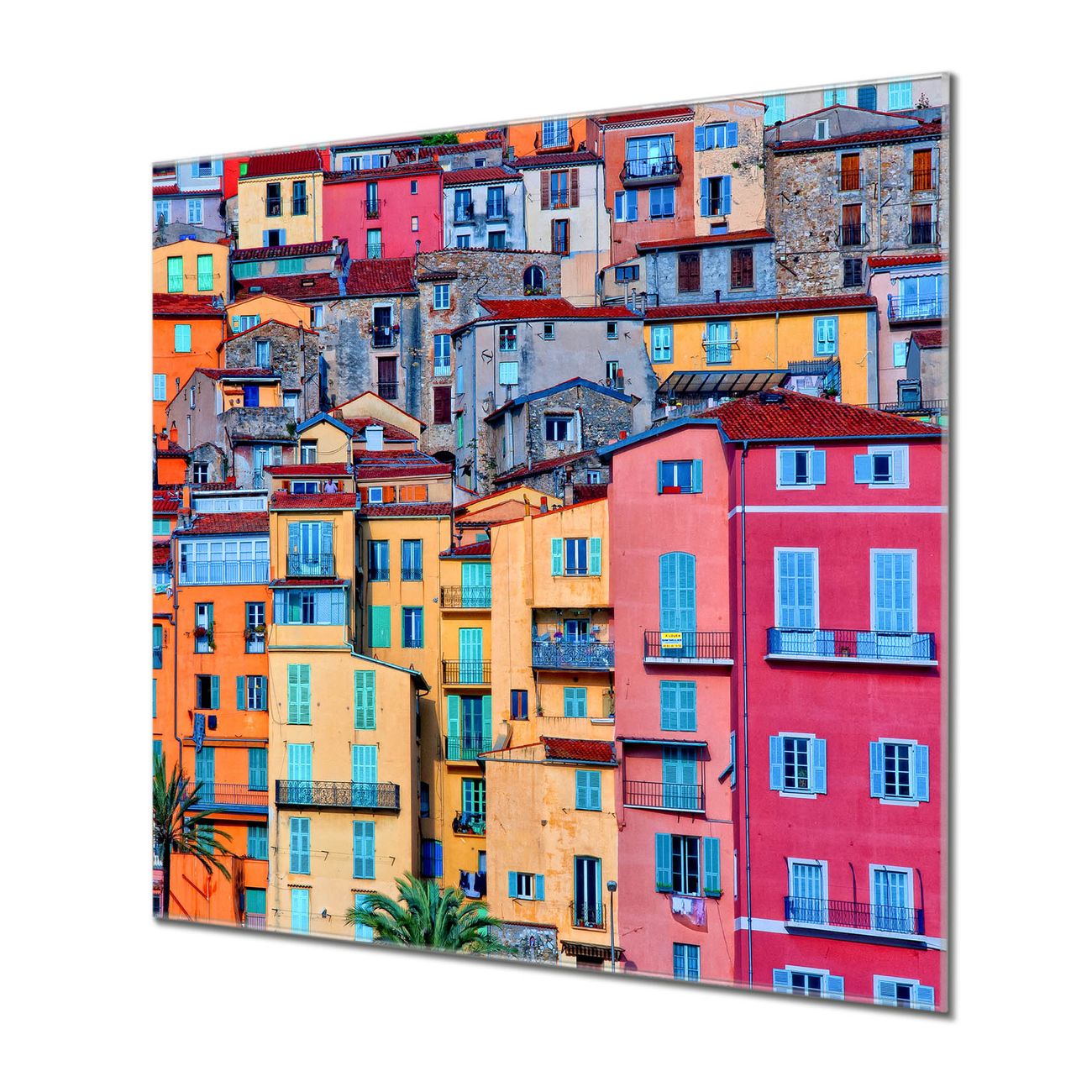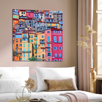 Quadratisches Wandbild aus Glas Häuserberg