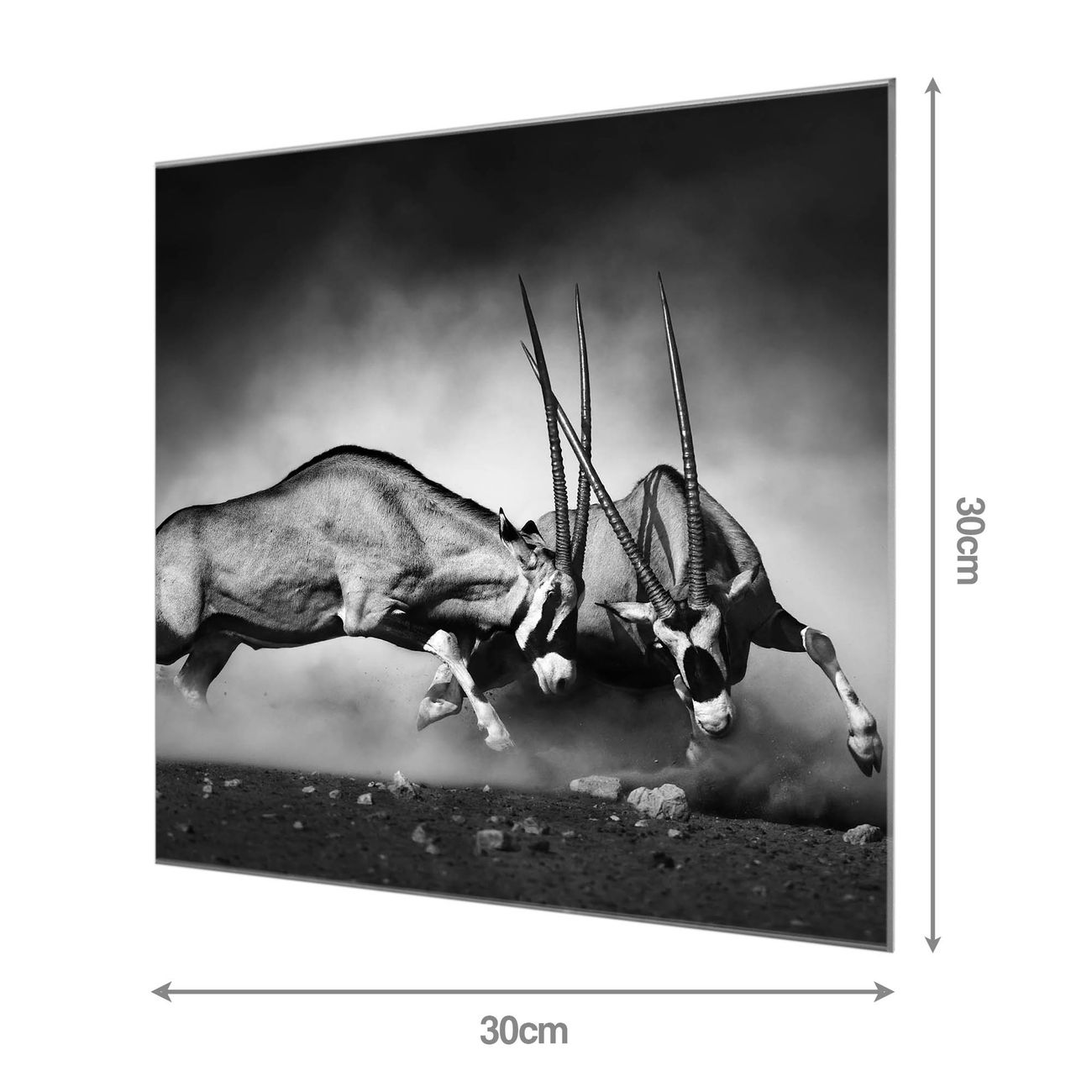 - Material: 4mm Sicherheitsglas mit Metallrückwand