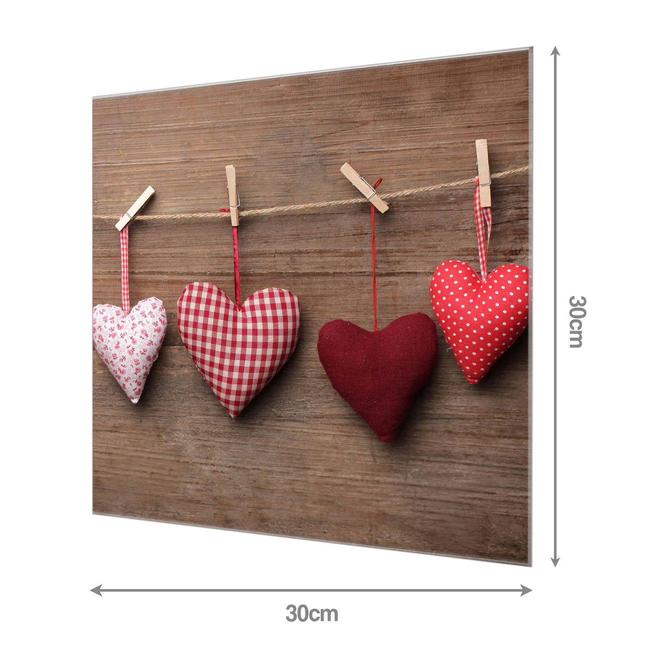 Quadratisches Wandbild aus Glas Herzen