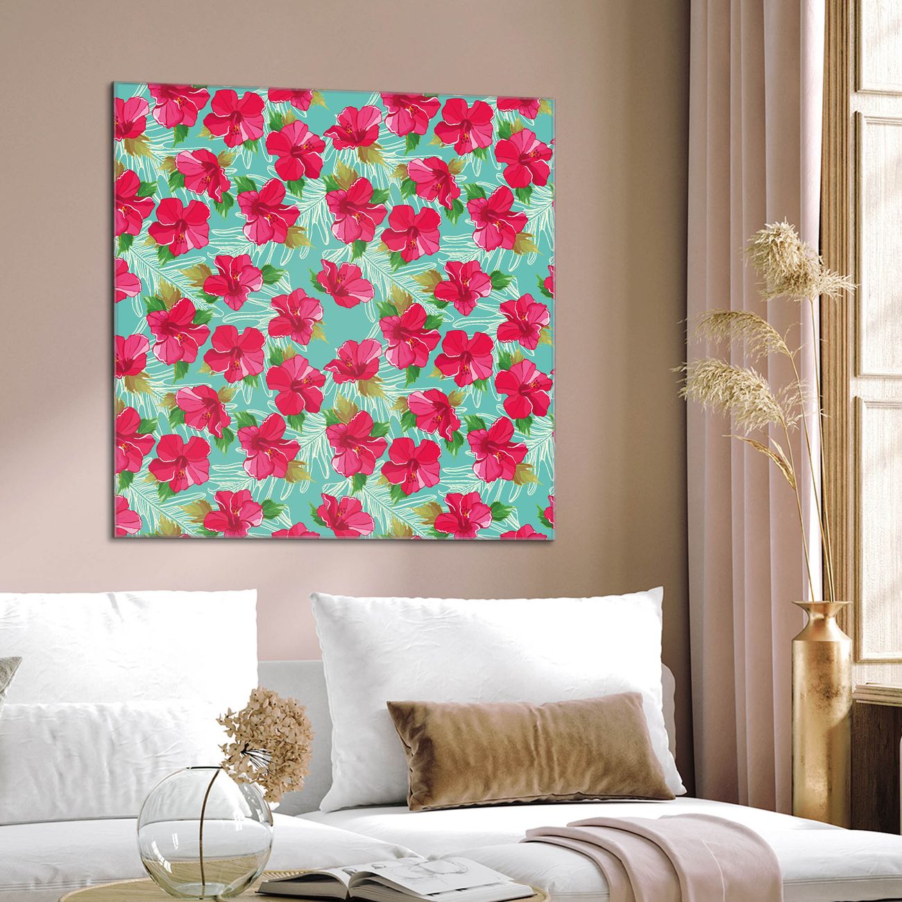 Quadratisches Wandbild aus Glas Hibiskus