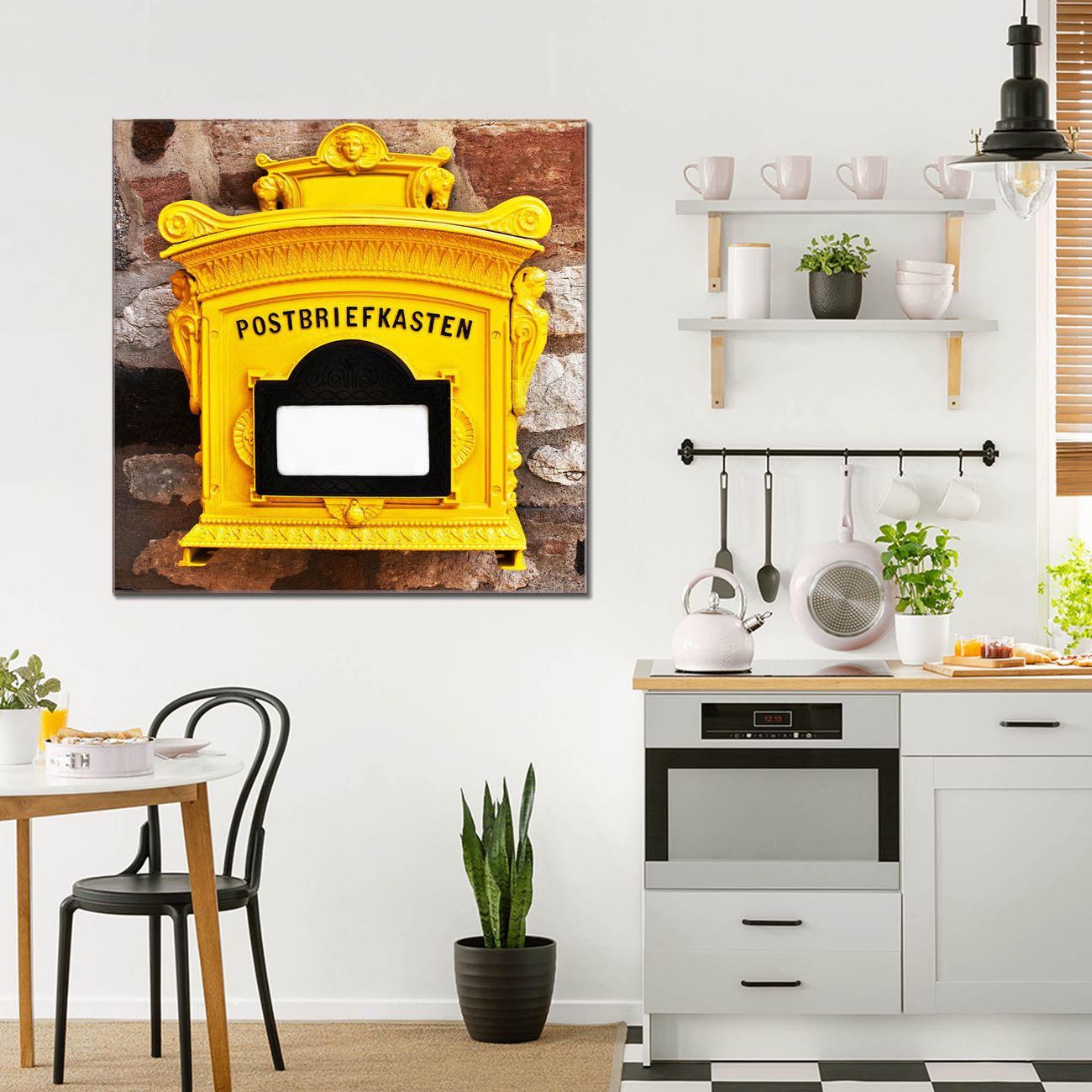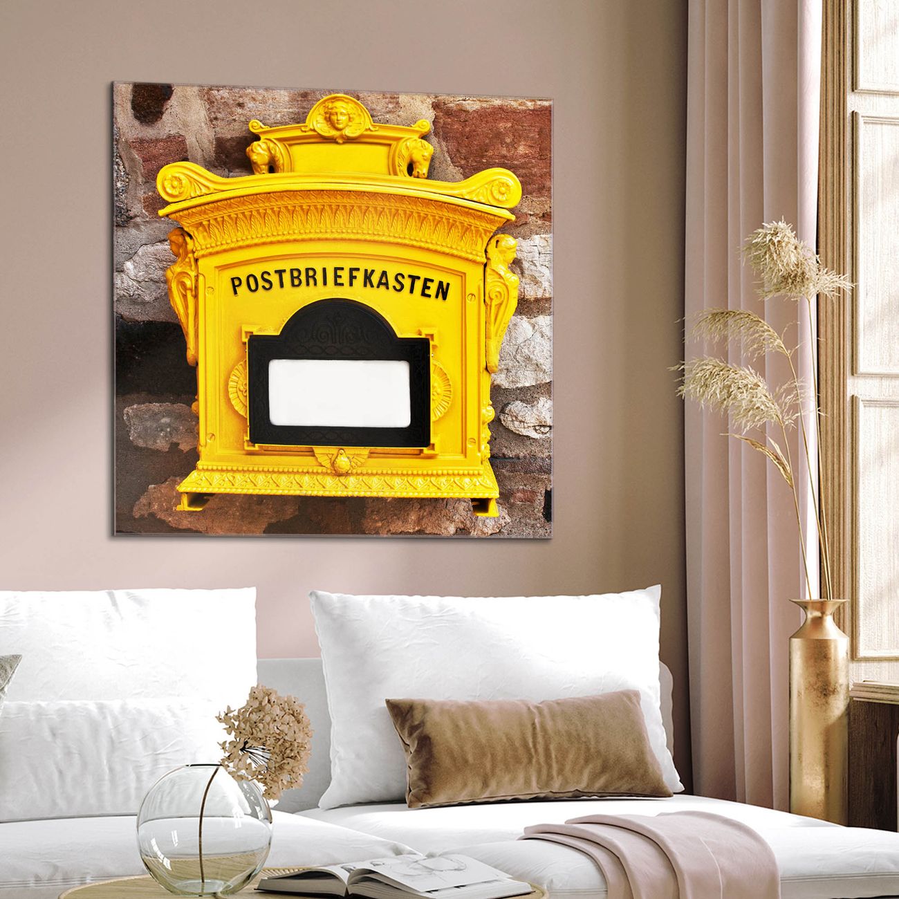 Quadratisches Wandbild aus Glas Historischer Postkasten