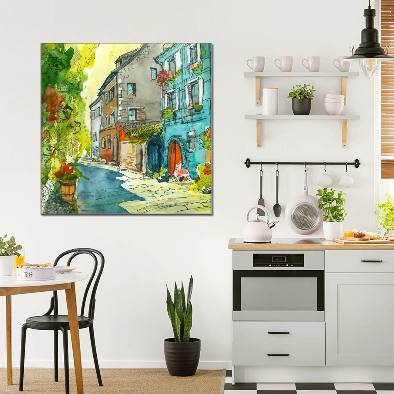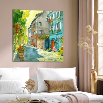 Quadratisches Wandbild aus Glas Historischer Stadtkern