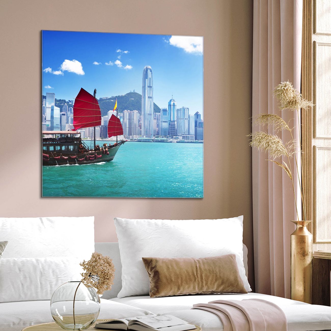 Unsere einzigartigen Glasbilder im Querformat von banjado mit Motiv Hong Kong sind der absolute Hingucker! Unsere Banjado Glasbilder sind sehr begehrt, weil sie top verarbeitet sind und sich ganz leicht montieren lassen. Schon mit wenigen Handgriffen hängen sie an der Wand und strahlen mit höchster brillianz. Durch die Ramenlose Herstellung schwebt das Echtglasbild förmlich an der Wand. Das Motiv erscheint besonders ausdrucksstark und hochwertig und ist hinter dem Echtglas geschützt.