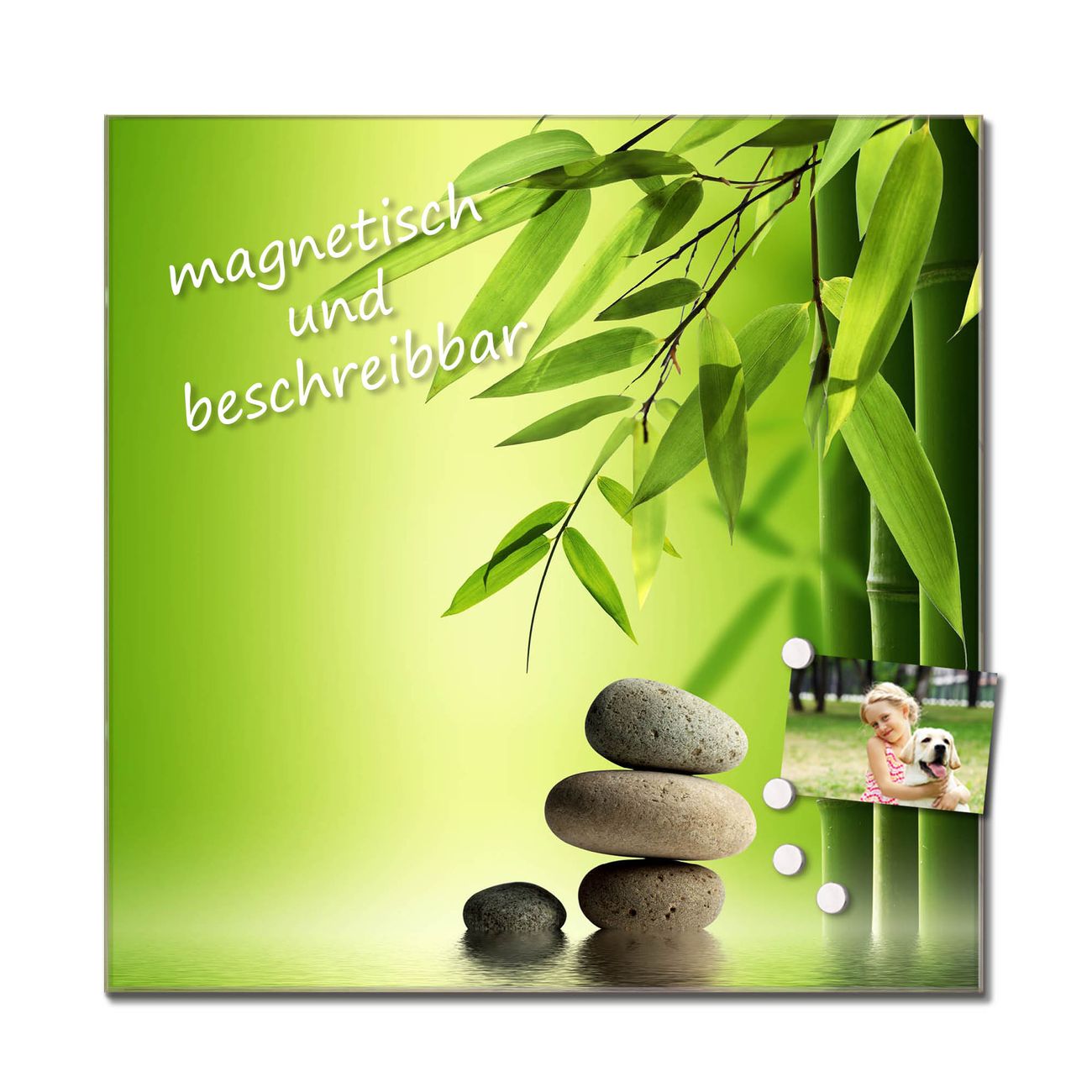Das Glasbild besteht aus 4mm gehärtetem zertifiziertem ESG Sicherheitsglas, die Rückwand aus einem magnetischen Stahlblech. Durch die superflache Bauweise haben Sie die Wahl aus einer Vielzahl von Befestigungsmöglichkeiten. Sie können das Wandbild mit einem Montagekleber superflach an die Wand kleben oder Sie wählen eines unserer passenden Befestigungssets, welches eine optimale Montage garantiert. Durch die mitgelieferten 4 Neodym-Magnete ist Ihr Glaswandbild sofort einsatzbereit. Wir sind ein kleines Team aus dem Herzen von Sachsen und fertigen alle Artikel von Hand für Sie an. Wir entwerfen unsere Produkte selbst mit großer Liebe zum Detail.