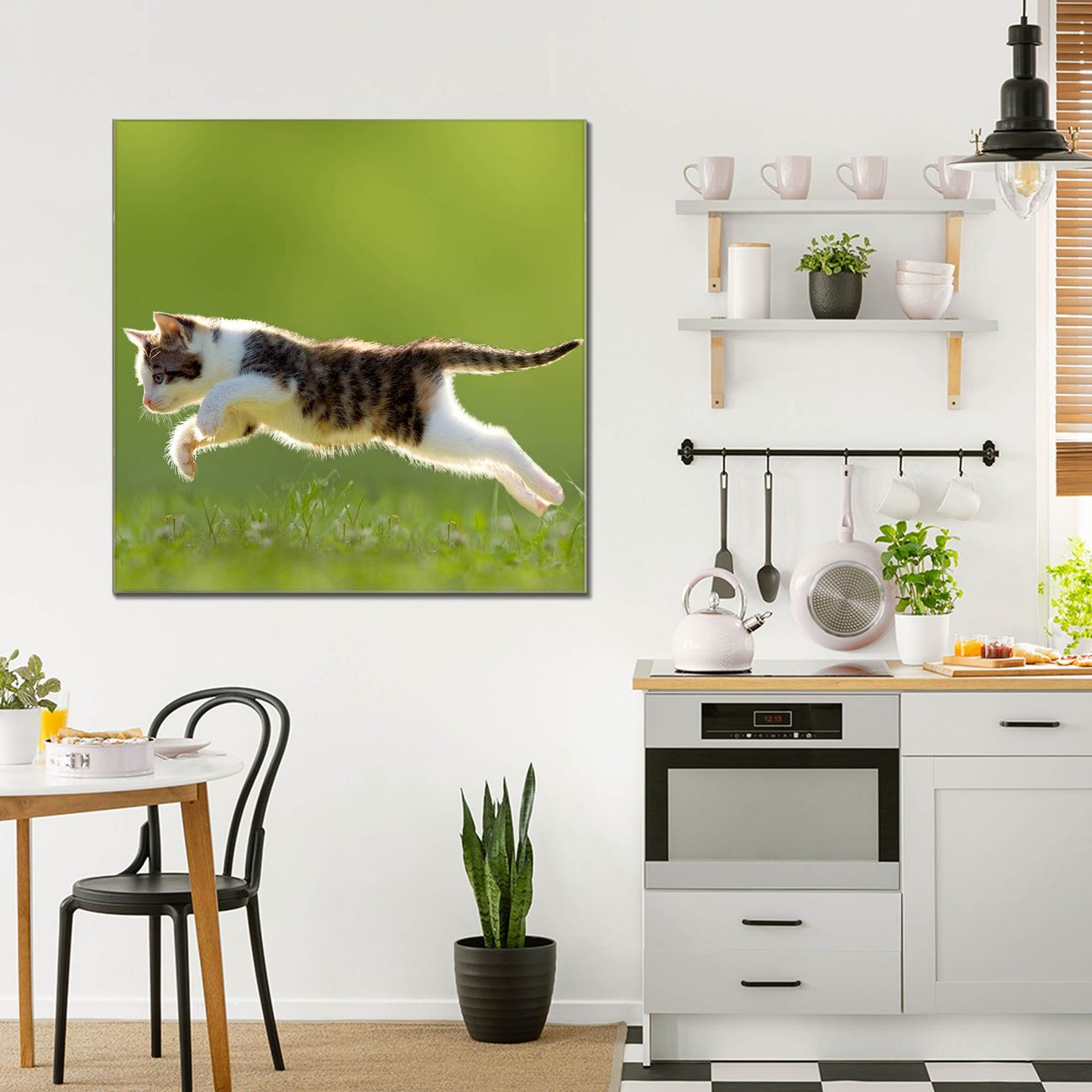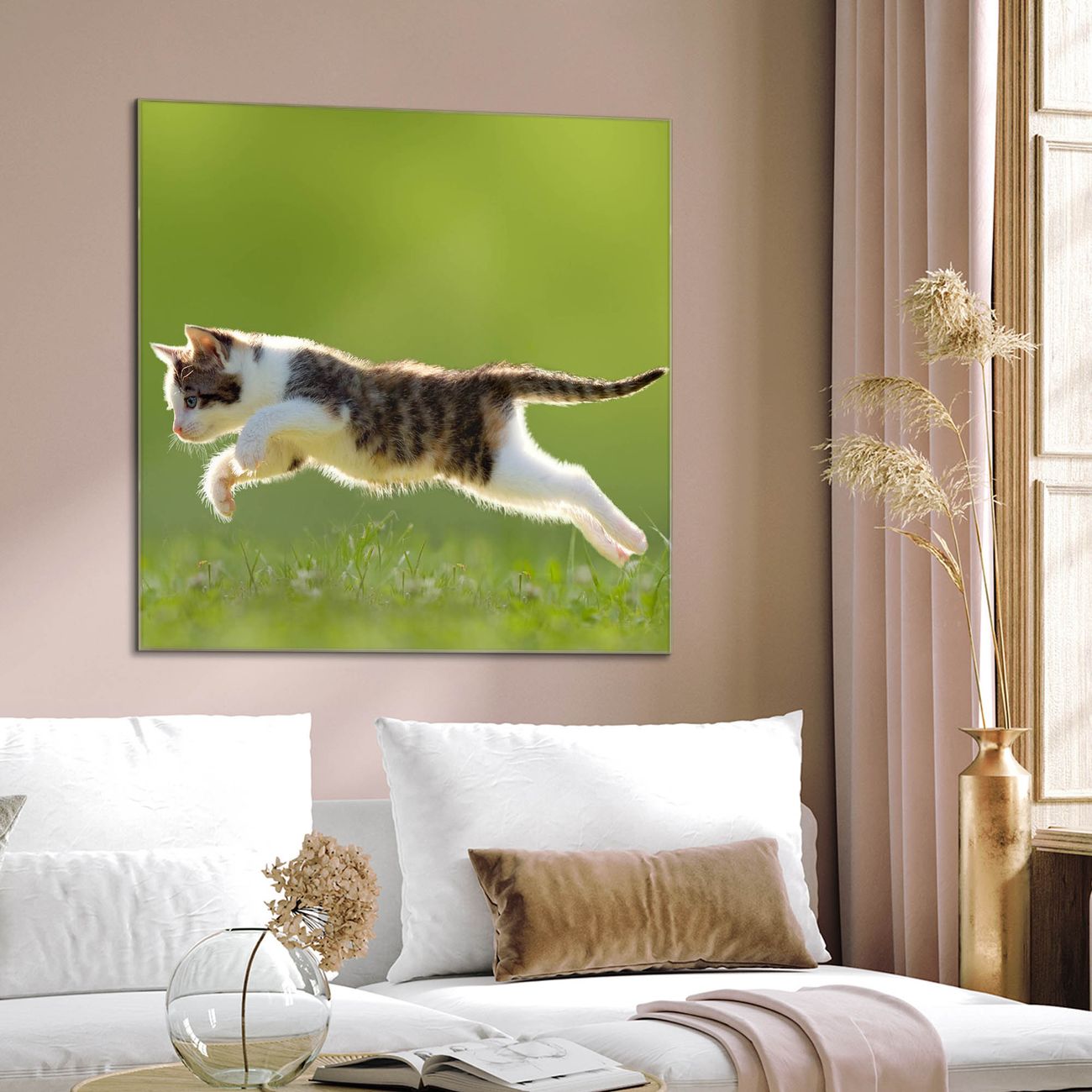 Unsere einzigartigen Glasbilder im Querformat von banjado mit Motiv Jagende Katze sind der absolute Hingucker! Unsere Banjado Glasbilder sind sehr begehrt, weil sie top verarbeitet sind und sich ganz leicht montieren lassen. Schon mit wenigen Handgriffen hängen sie an der Wand und strahlen mit höchster brillianz. Durch die Ramenlose Herstellung schwebt das Echtglasbild förmlich an der Wand. Das Motiv erscheint besonders ausdrucksstark und hochwertig und ist hinter dem Echtglas geschützt.
