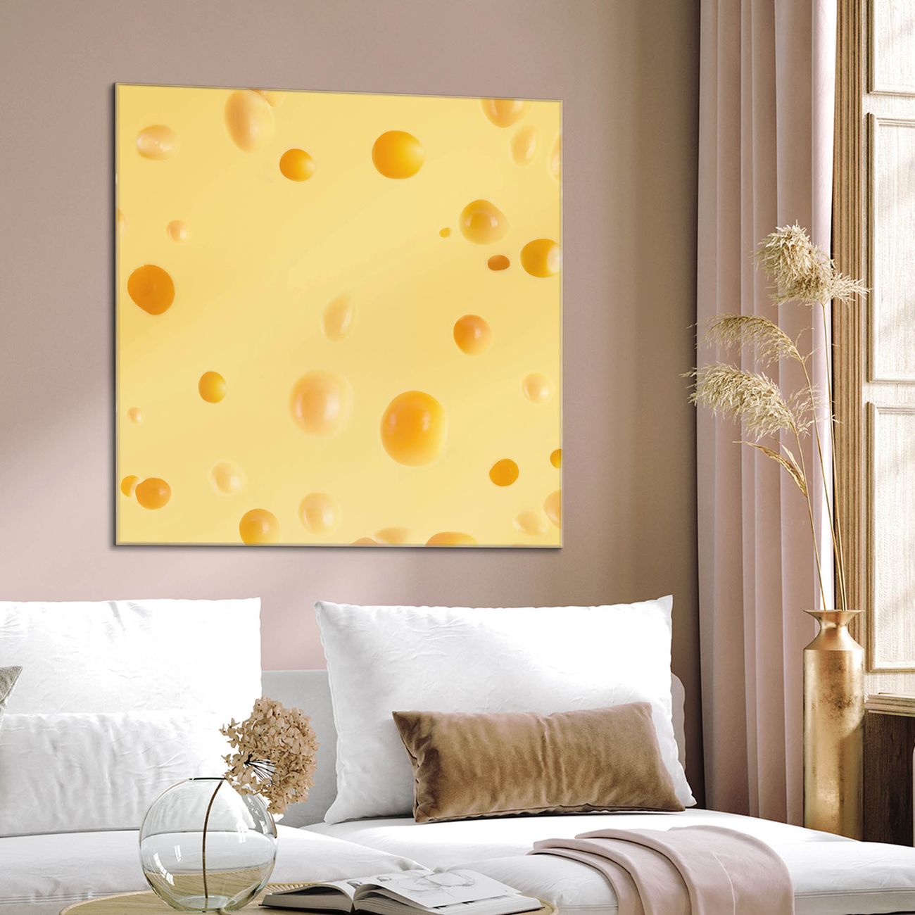 Quadratisches Wandbild aus Glas Käse