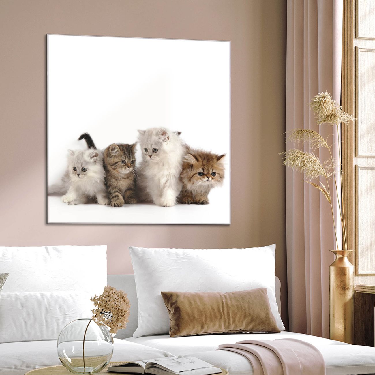 Unsere einzigartigen Glasbilder im Querformat von banjado mit Motiv Kaetzchen sind der absolute Hingucker! Unsere Banjado Glasbilder sind sehr begehrt, weil sie top verarbeitet sind und sich ganz leicht montieren lassen. Schon mit wenigen Handgriffen hängen sie an der Wand und strahlen mit höchster brillianz. Durch die Ramenlose Herstellung schwebt das Echtglasbild förmlich an der Wand. Das Motiv erscheint besonders ausdrucksstark und hochwertig und ist hinter dem Echtglas geschützt.