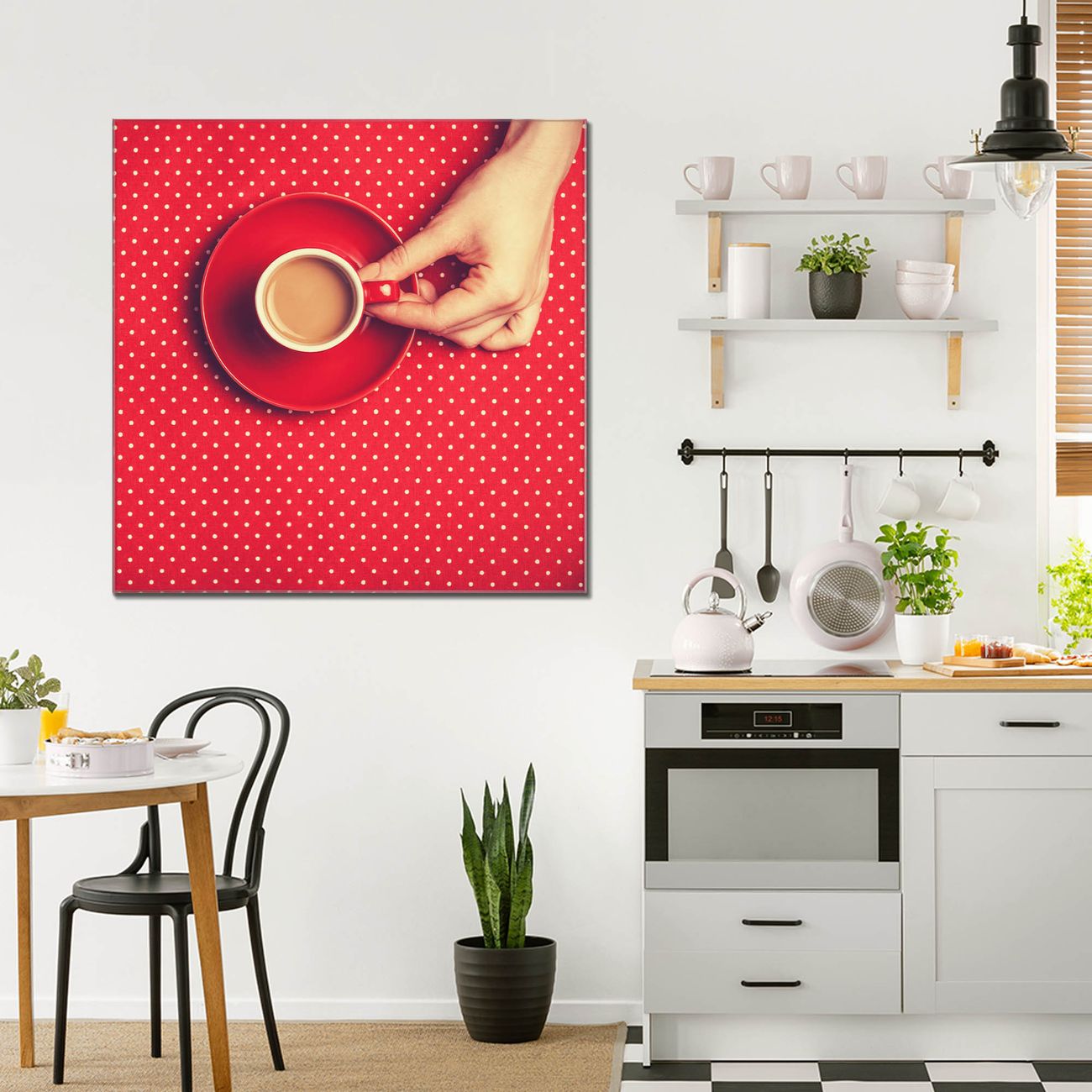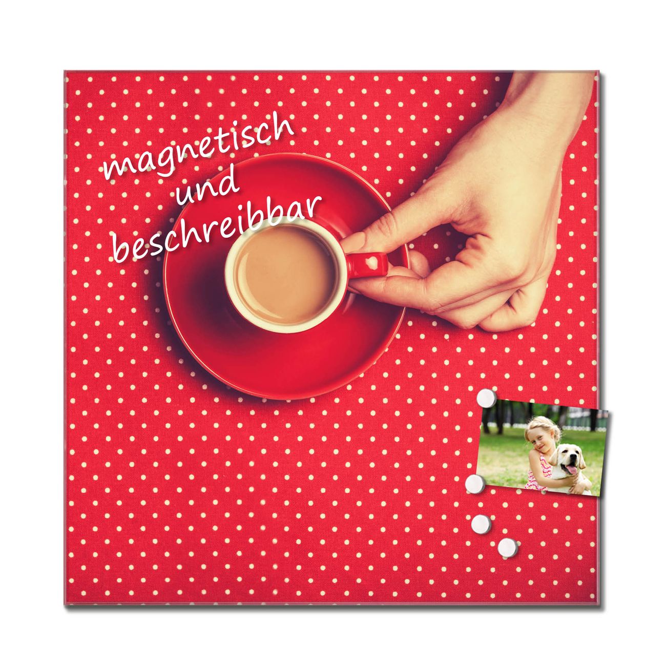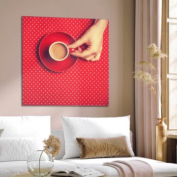 Quadratisches Wandbild aus Glas Kaffee Rot Weiss