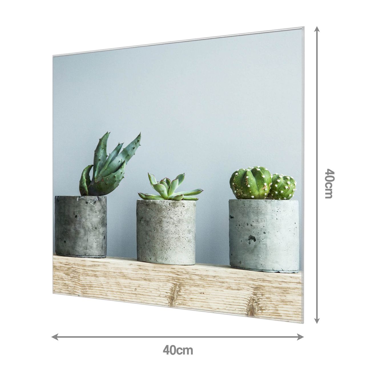 Quadratisches Wandbild aus Glas Kakteen in Beton