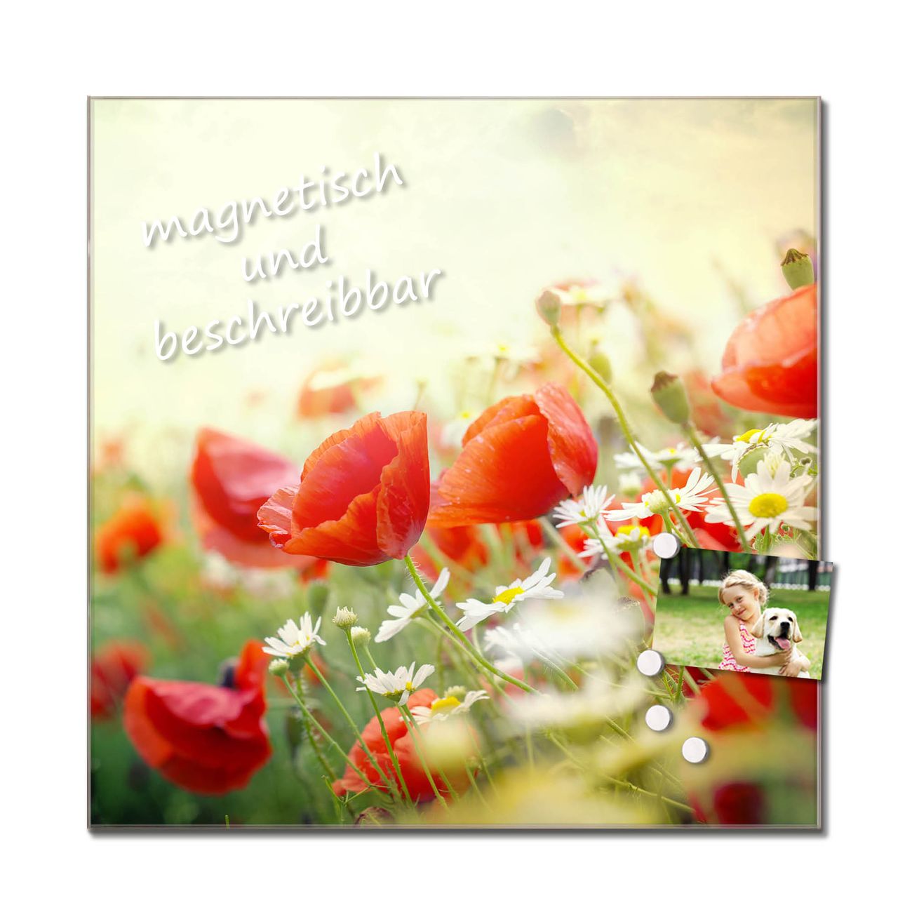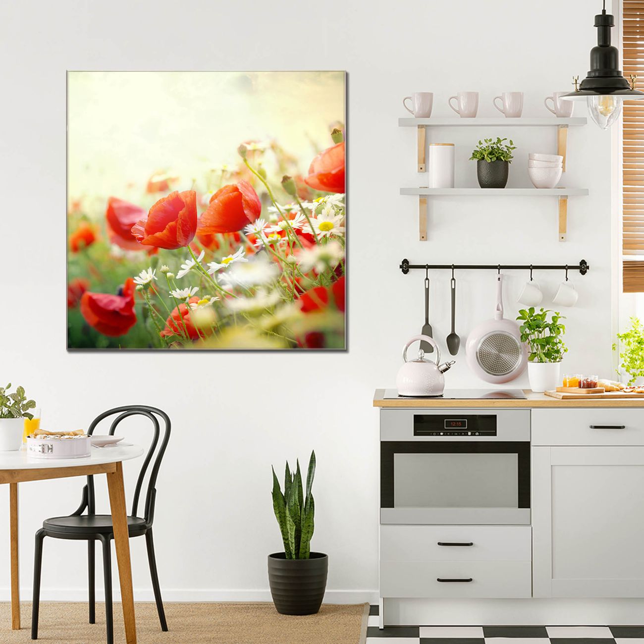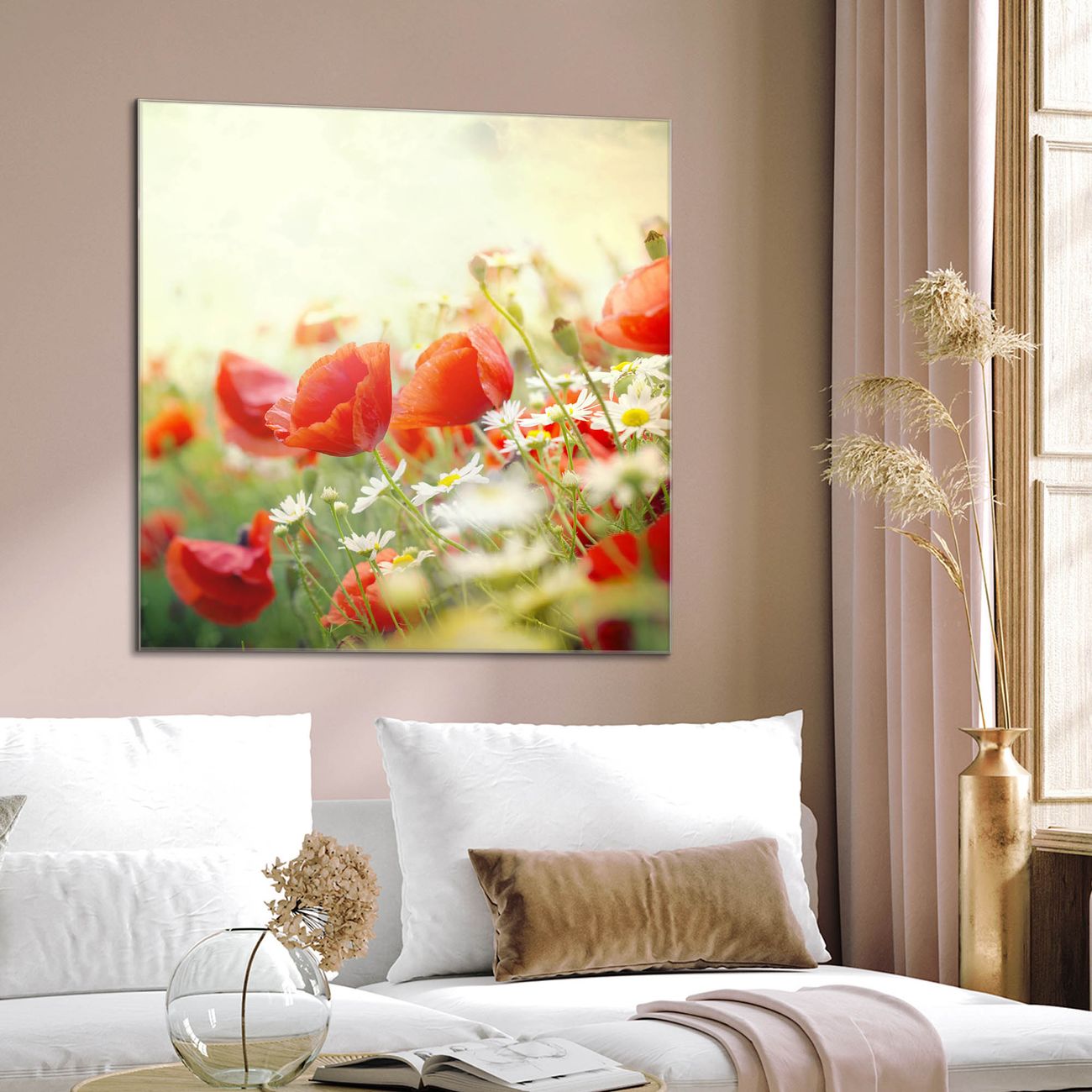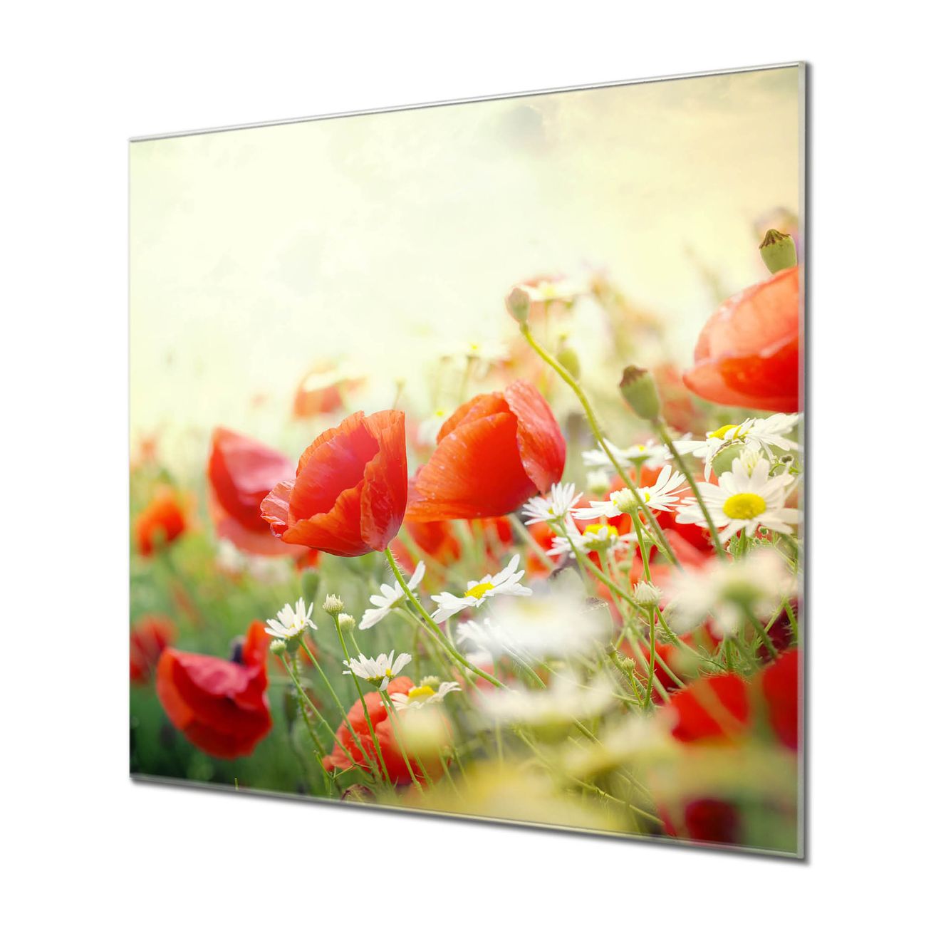 Quadratisches Wandbild aus Glas Kamille Und Mohn