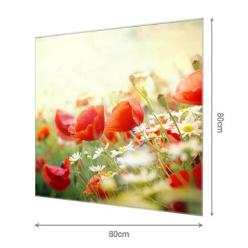 Unsere einzigartigen Glasbilder im Querformat von banjado mit Motiv Kamille Und Mohn sind der absolute Hingucker! Unsere Banjado Glasbilder sind sehr begehrt, weil sie top verarbeitet sind und sich ganz leicht montieren lassen. Schon mit wenigen Handgriffen hängen sie an der Wand und strahlen mit höchster brillianz. Durch die Ramenlose Herstellung schwebt das Echtglasbild förmlich an der Wand. Das Motiv erscheint besonders ausdrucksstark und hochwertig und ist hinter dem Echtglas geschützt.