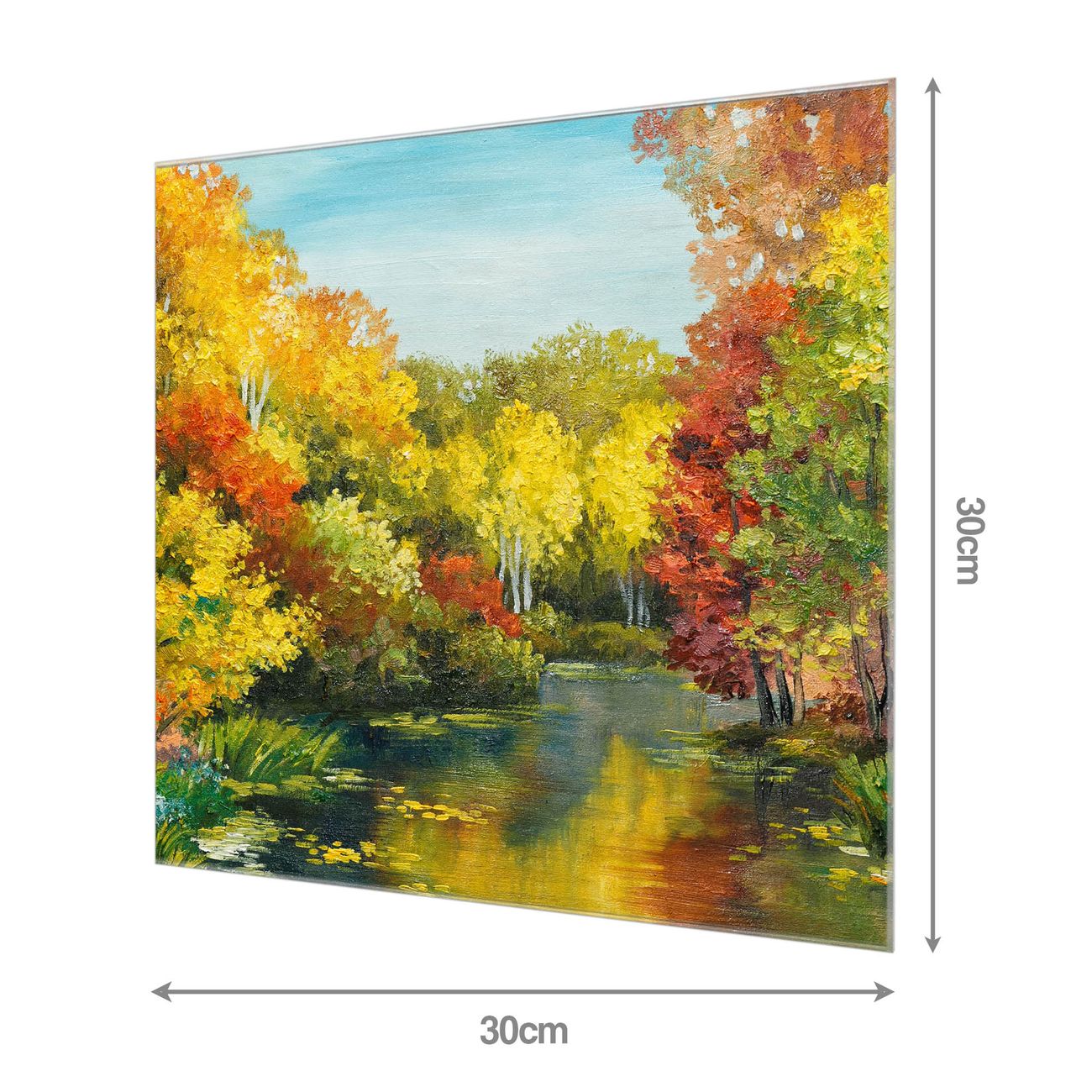 Quadratisches Wandbild aus Glas Kanal Im Herbst