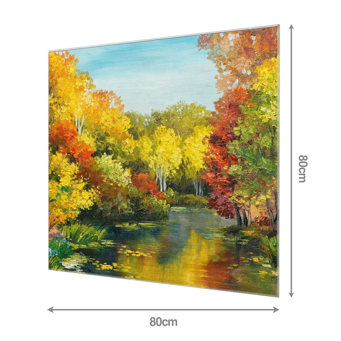 Quadratisches Wandbild aus Glas Kanal Im Herbst