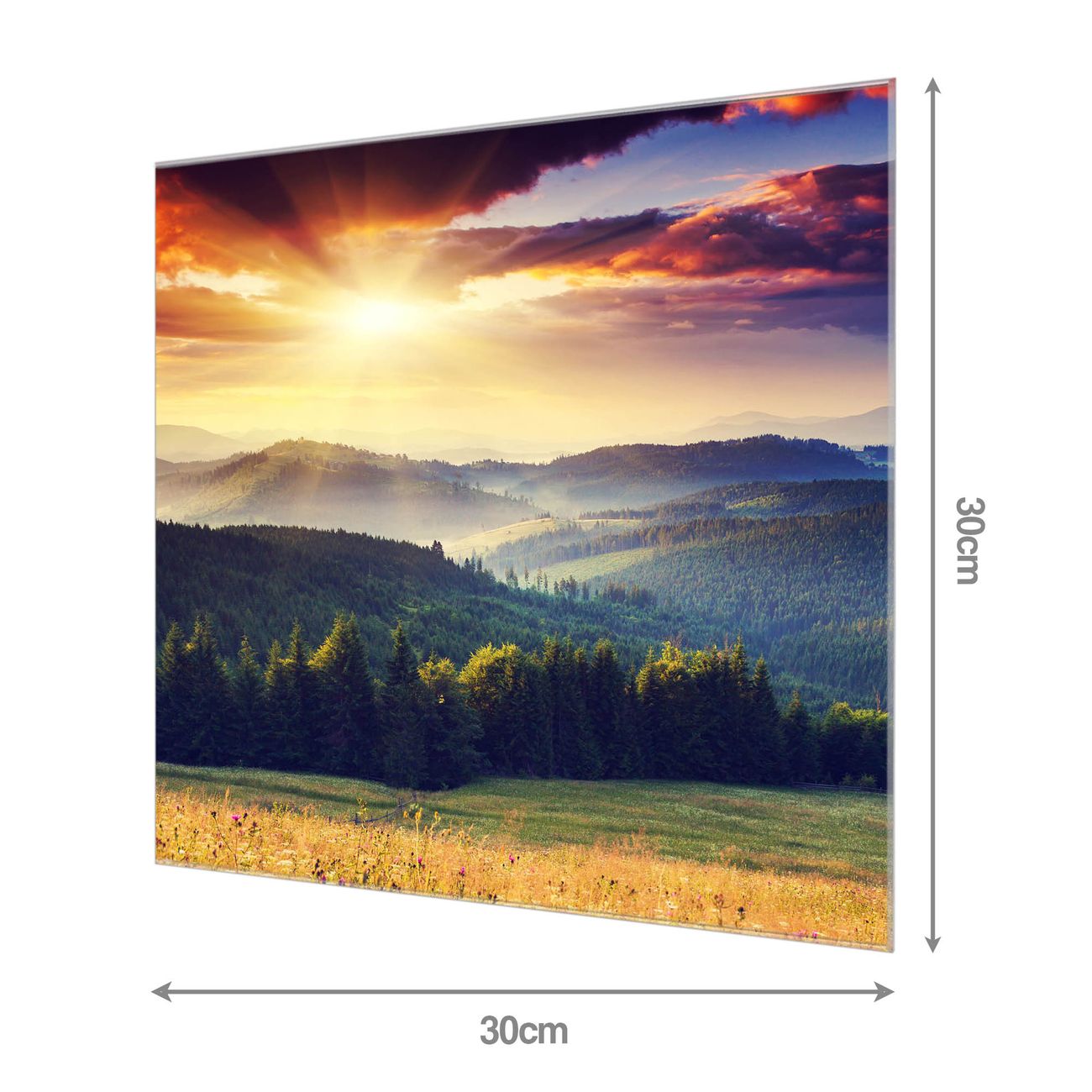 Quadratisches Wandbild aus Glas Karpaten Sonnenuntergang