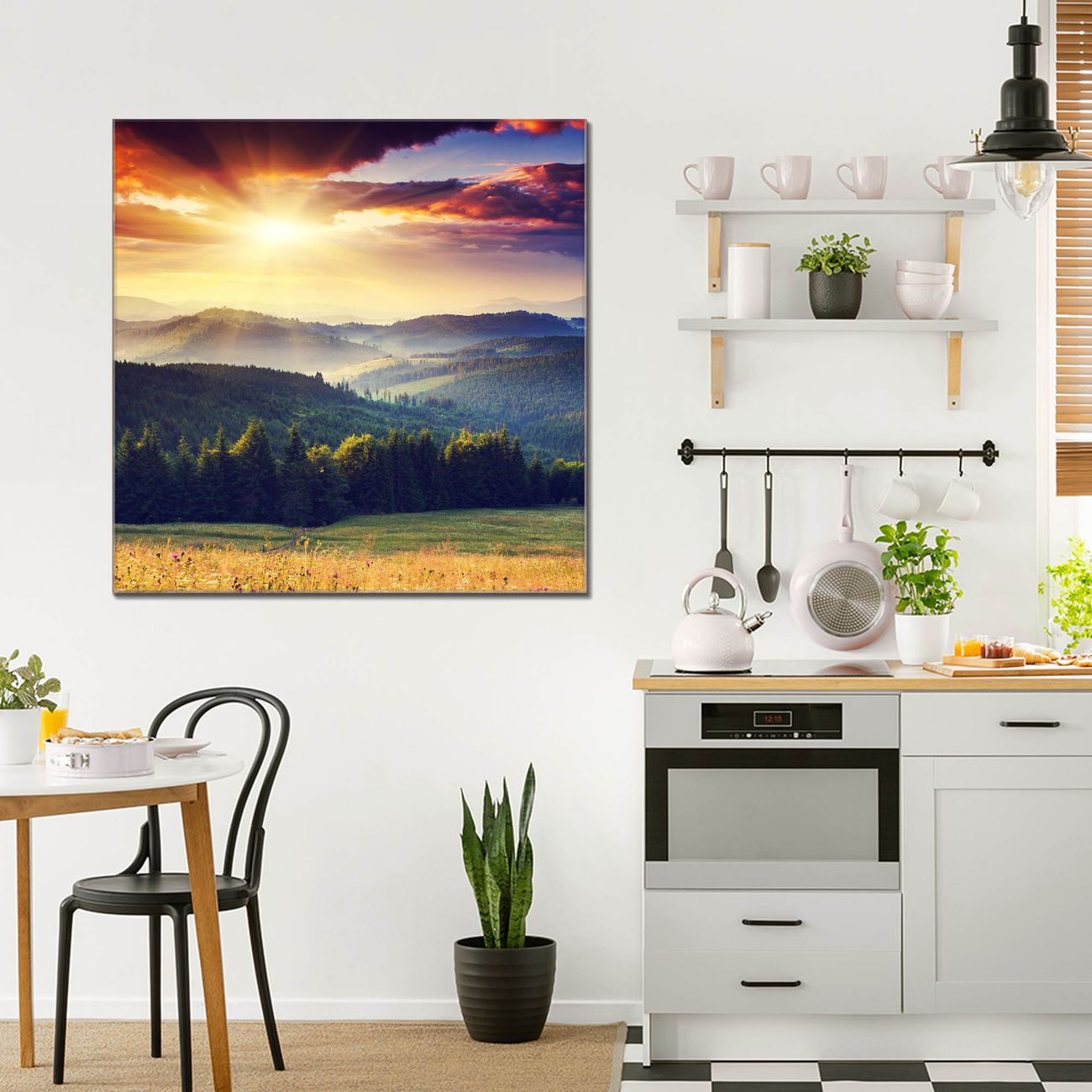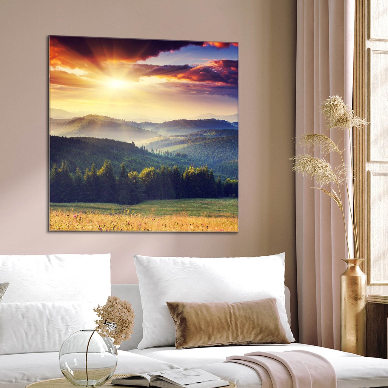 Quadratisches Wandbild aus Glas Karpaten Sonnenuntergang