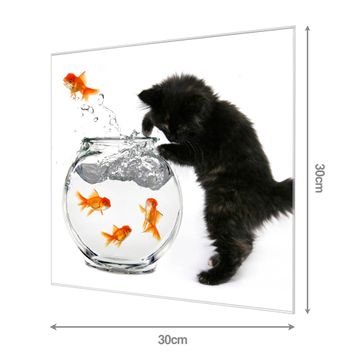 Unsere einzigartigen Glasbilder im Querformat von banjado mit Motiv Katze Und Fisch sind der absolute Hingucker! Unsere Banjado Glasbilder sind sehr begehrt, weil sie top verarbeitet sind und sich ganz leicht montieren lassen. Schon mit wenigen Handgriffen hängen sie an der Wand und strahlen mit höchster brillianz. Durch die Ramenlose Herstellung schwebt das Echtglasbild förmlich an der Wand. Das Motiv erscheint besonders ausdrucksstark und hochwertig und ist hinter dem Echtglas geschützt.
