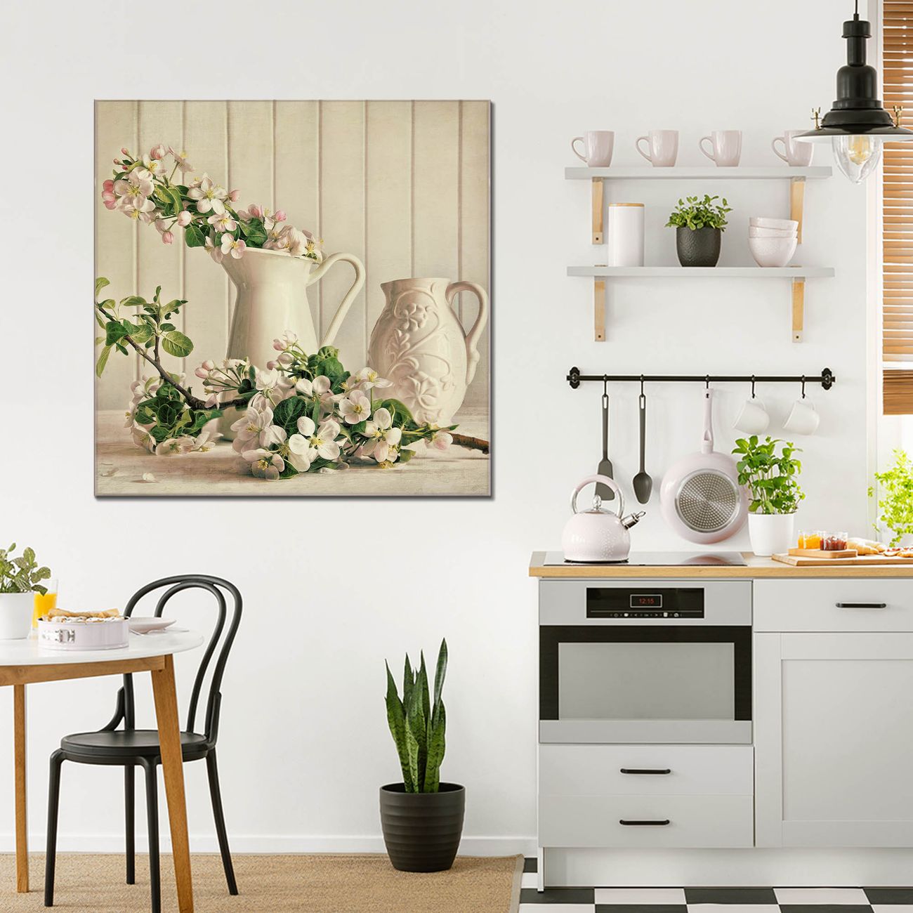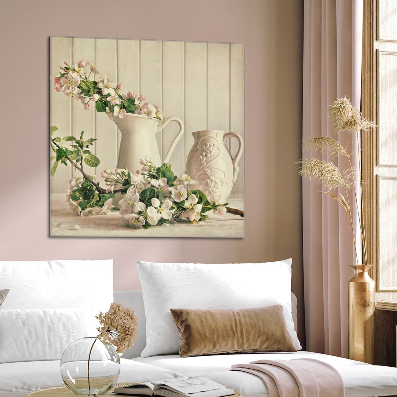 Quadratisches Wandbild aus Glas Kirschzweige