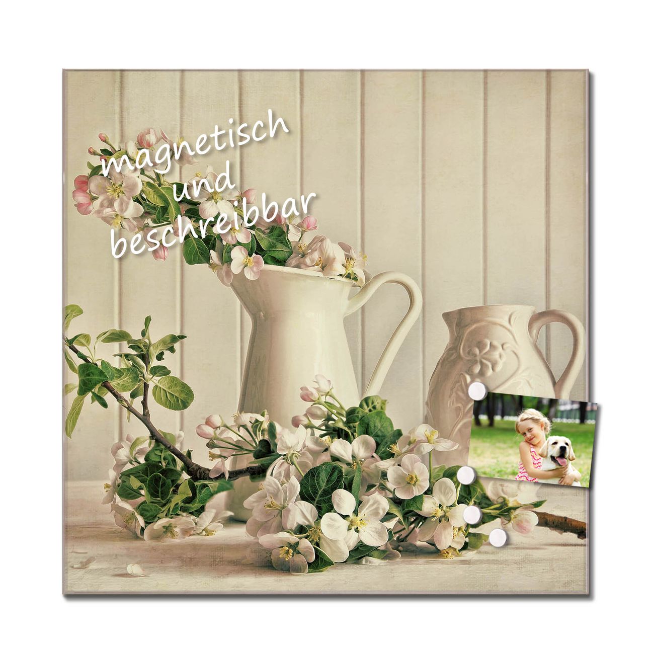 Das Glasbild besteht aus 4mm gehärtetem zertifiziertem ESG Sicherheitsglas, die Rückwand aus einem magnetischen Stahlblech. Durch die superflache Bauweise haben Sie die Wahl aus einer Vielzahl von Befestigungsmöglichkeiten. Sie können das Wandbild mit einem Montagekleber superflach an die Wand kleben oder Sie wählen eines unserer passenden Befestigungssets, welches eine optimale Montage garantiert. Durch die mitgelieferten 4 Neodym-Magnete ist Ihr Glaswandbild sofort einsatzbereit. Wir sind ein kleines Team aus dem Herzen von Sachsen und fertigen alle Artikel von Hand für Sie an. Wir entwerfen unsere Produkte selbst mit großer Liebe zum Detail.