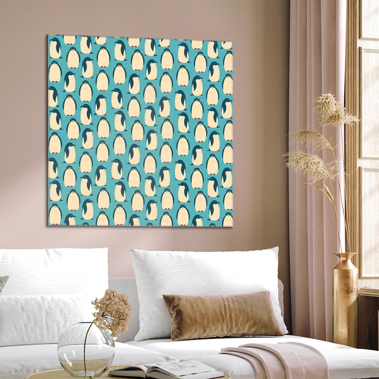 Quadratisches Wandbild aus Glas Königspinguine