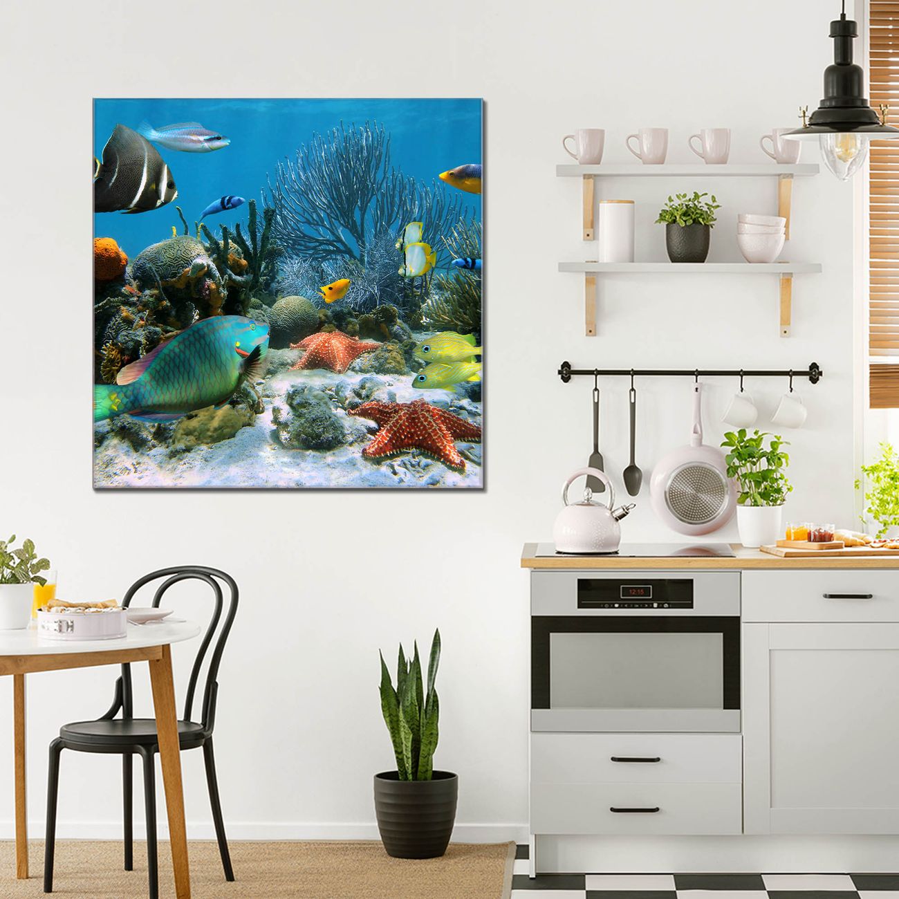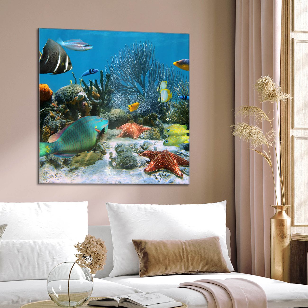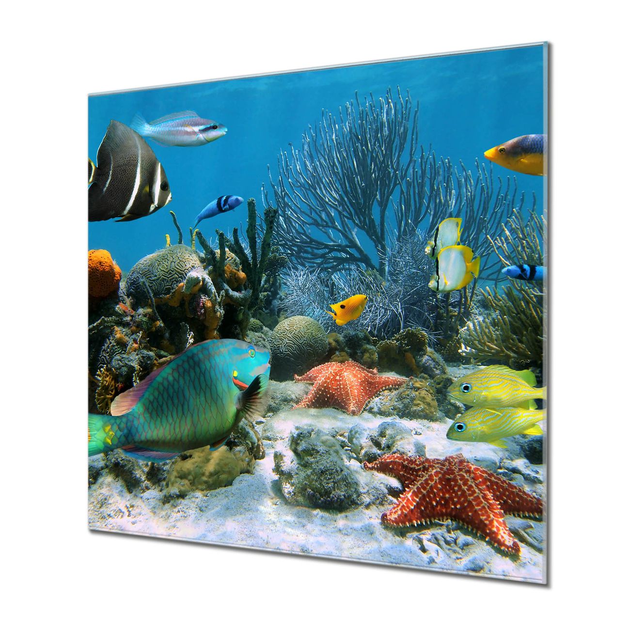 Quadratisches Wandbild aus Glas Korallenriff 1