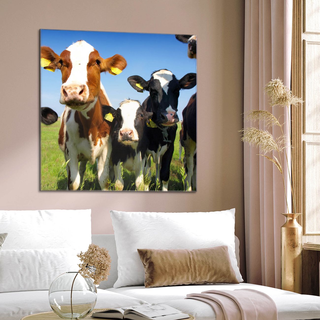 Unsere einzigartigen Glasbilder im Querformat von banjado mit Motiv Kühe sind der absolute Hingucker! Unsere Banjado Glasbilder sind sehr begehrt, weil sie top verarbeitet sind und sich ganz leicht montieren lassen. Schon mit wenigen Handgriffen hängen sie an der Wand und strahlen mit höchster brillianz. Durch die Ramenlose Herstellung schwebt das Echtglasbild förmlich an der Wand. Das Motiv erscheint besonders ausdrucksstark und hochwertig und ist hinter dem Echtglas geschützt.