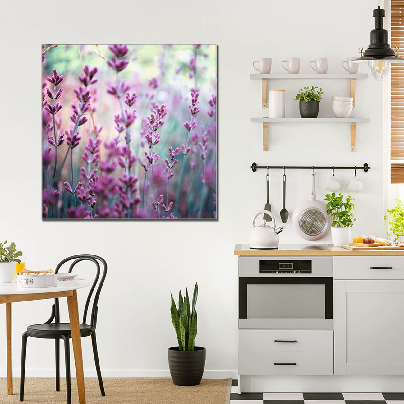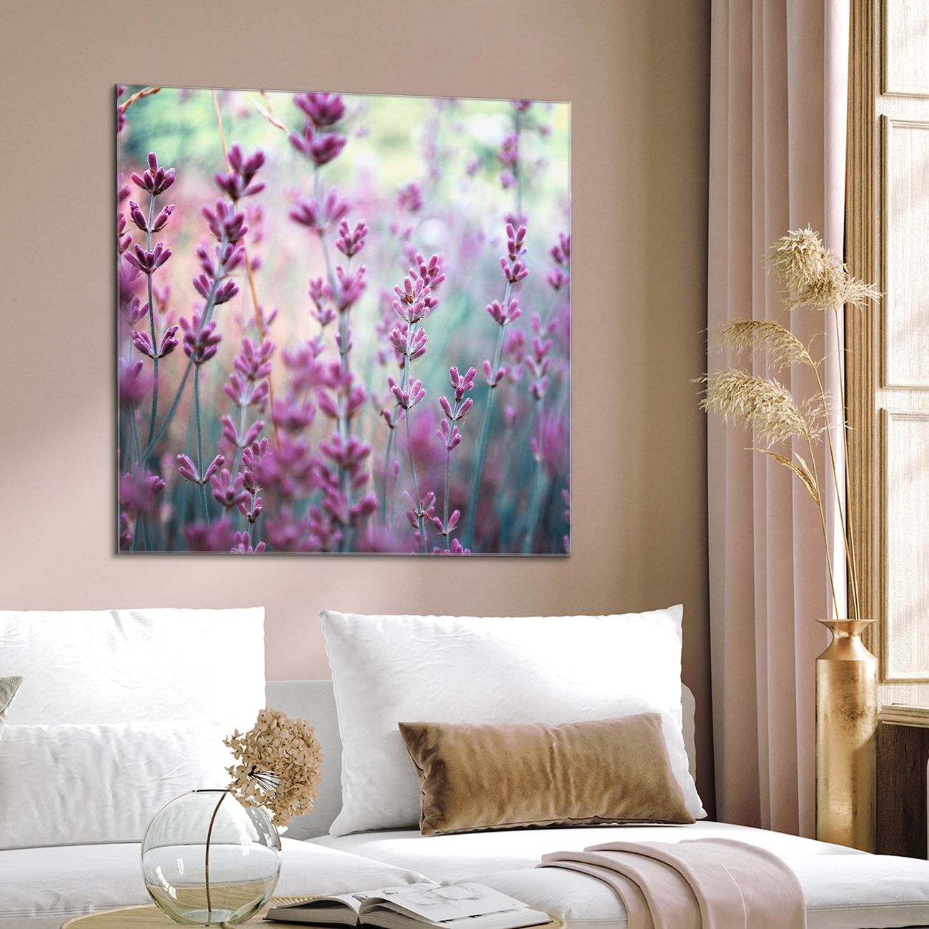 Quadratisches Wandbild aus Glas Lavendel 2
