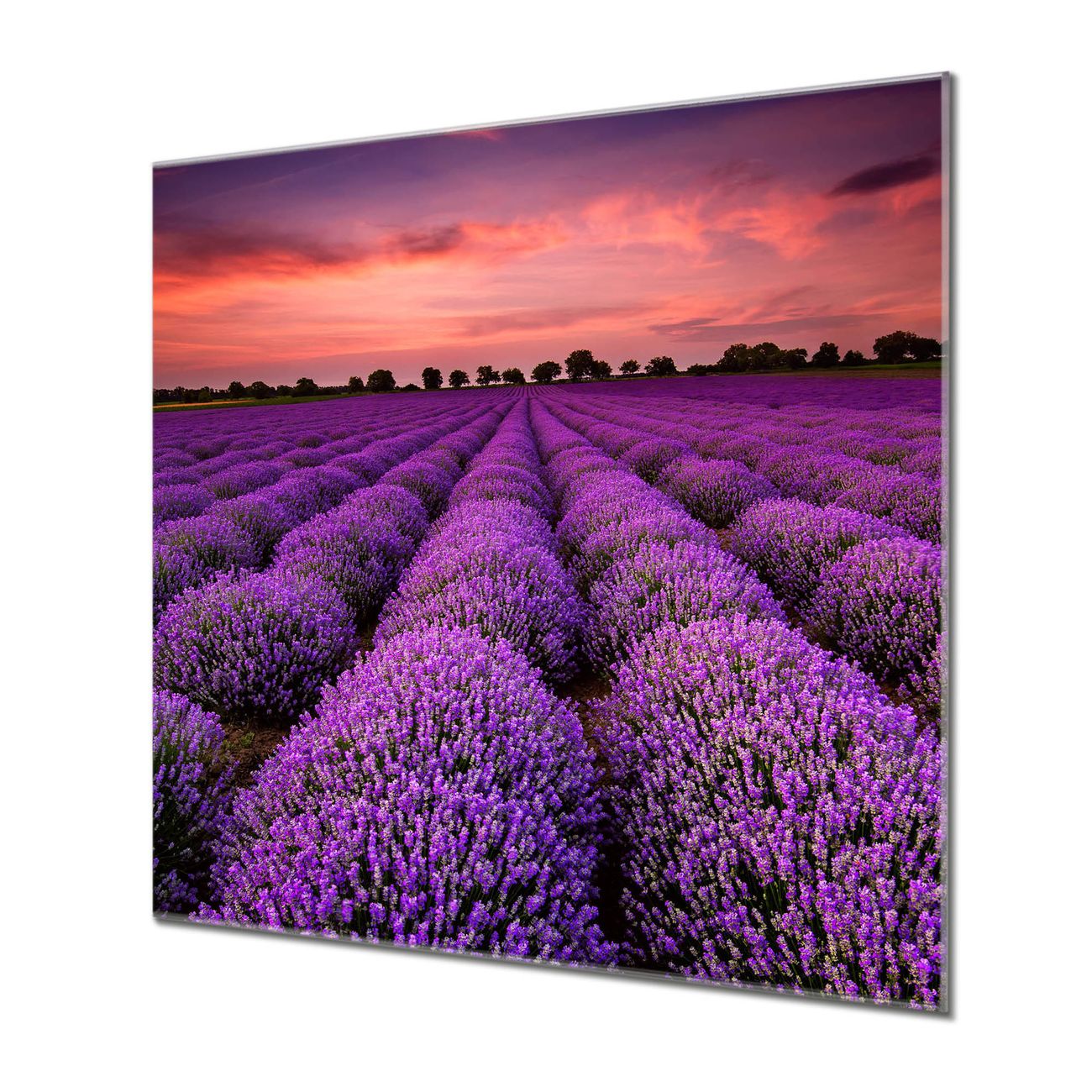 Quadratisches Wandbild aus Glas Lavendelfeld