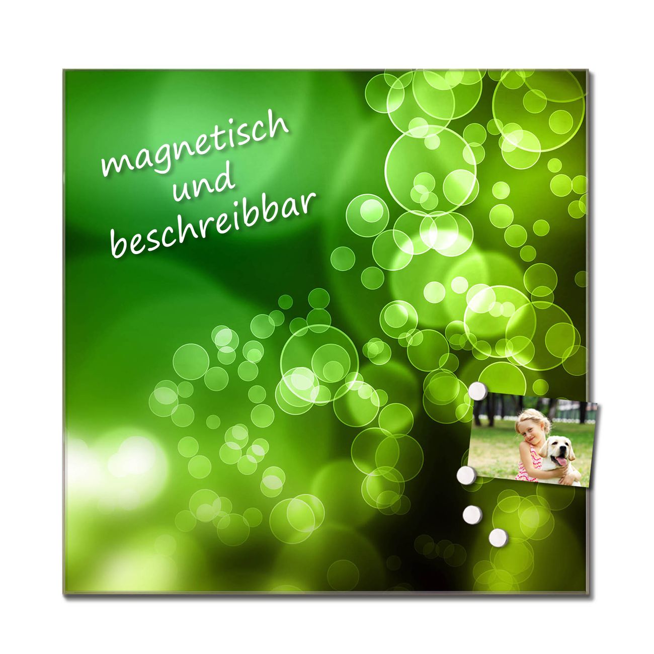 Das Glasbild besteht aus 4mm gehärtetem zertifiziertem ESG Sicherheitsglas, die Rückwand aus einem magnetischen Stahlblech. Durch die superflache Bauweise haben Sie die Wahl aus einer Vielzahl von Befestigungsmöglichkeiten. Sie können das Wandbild mit einem Montagekleber superflach an die Wand kleben oder Sie wählen eines unserer passenden Befestigungssets, welches eine optimale Montage garantiert. Durch die mitgelieferten 4 Neodym-Magnete ist Ihr Glaswandbild sofort einsatzbereit. Wir sind ein kleines Team aus dem Herzen von Sachsen und fertigen alle Artikel von Hand für Sie an. Wir entwerfen unsere Produkte selbst mit großer Liebe zum Detail.