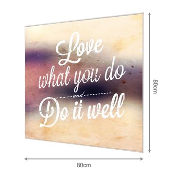 Unsere einzigartigen Glasbilder im Querformat von banjado mit Motiv Love What You Do sind der absolute Hingucker! Unsere Banjado Glasbilder sind sehr begehrt, weil sie top verarbeitet sind und sich ganz leicht montieren lassen. Schon mit wenigen Handgriffen hängen sie an der Wand und strahlen mit höchster brillianz. Durch die Ramenlose Herstellung schwebt das Echtglasbild förmlich an der Wand. Das Motiv erscheint besonders ausdrucksstark und hochwertig und ist hinter dem Echtglas geschützt.