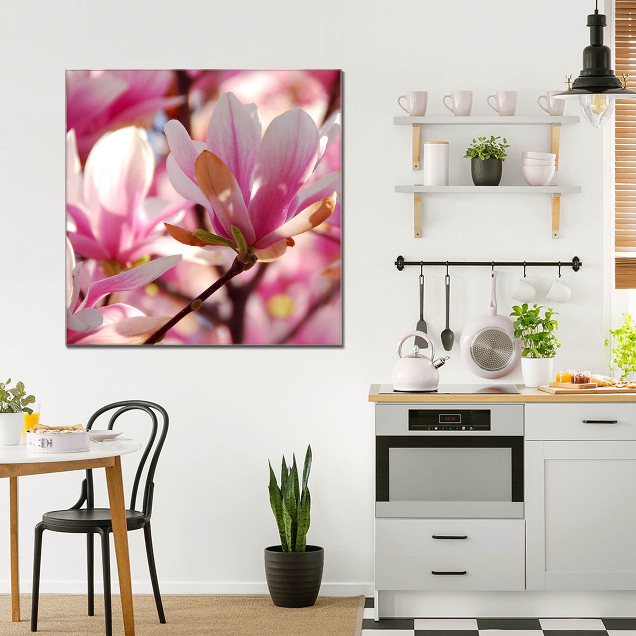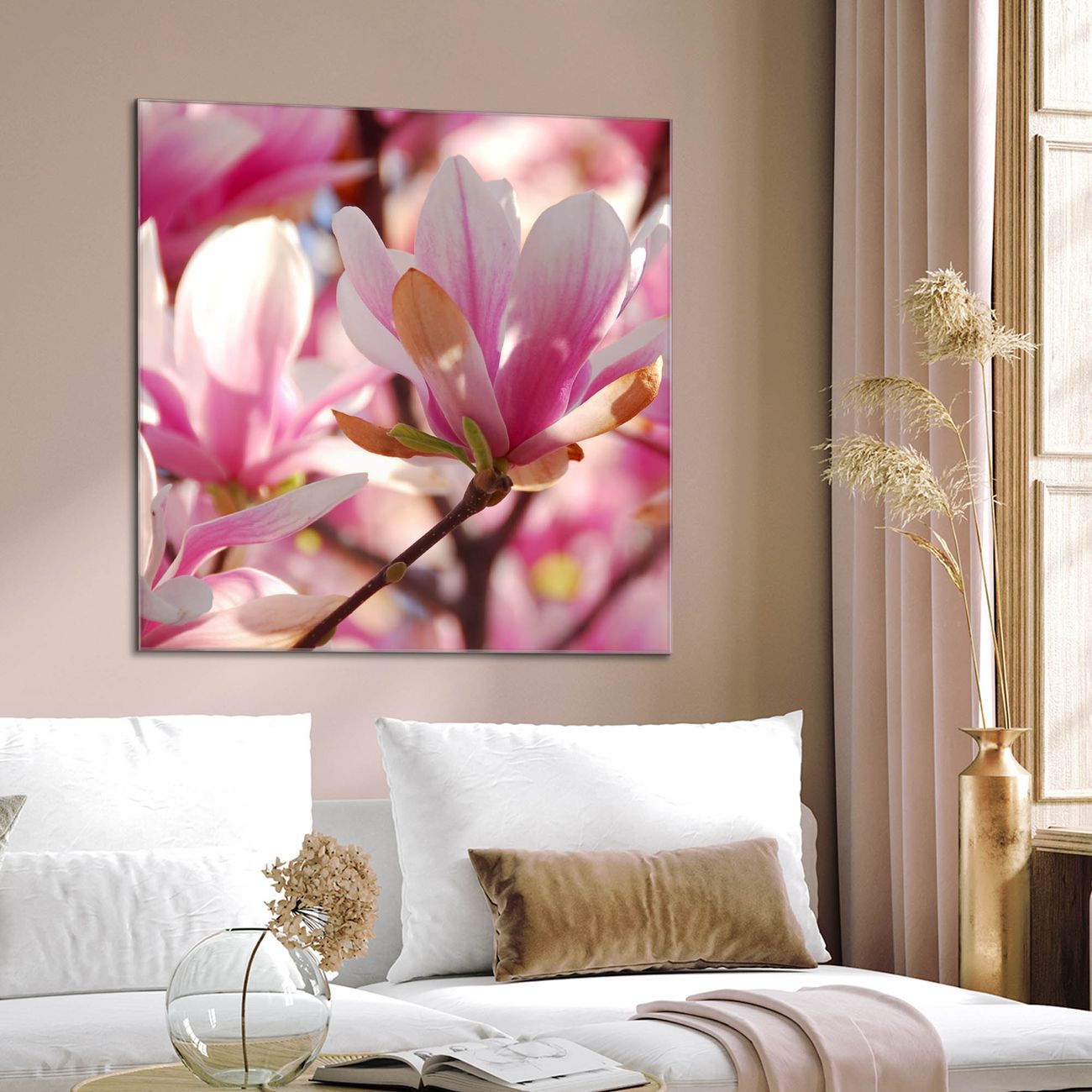 Quadratisches Wandbild aus Glas Magnolia