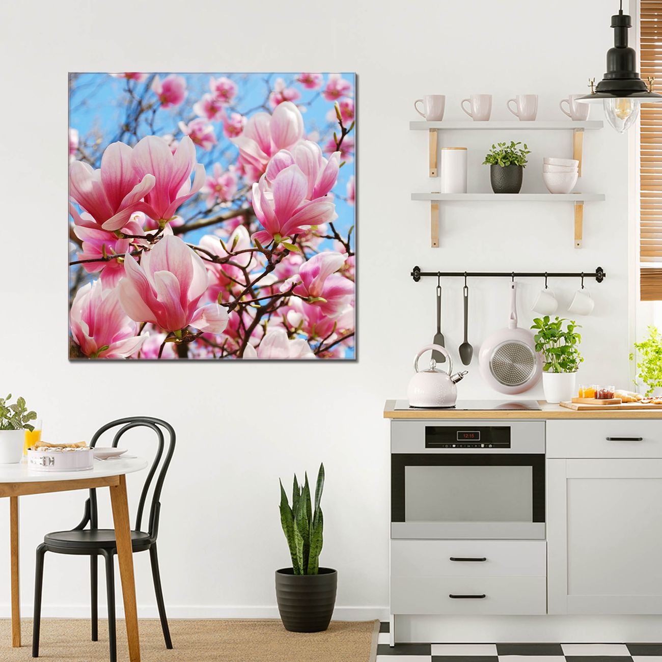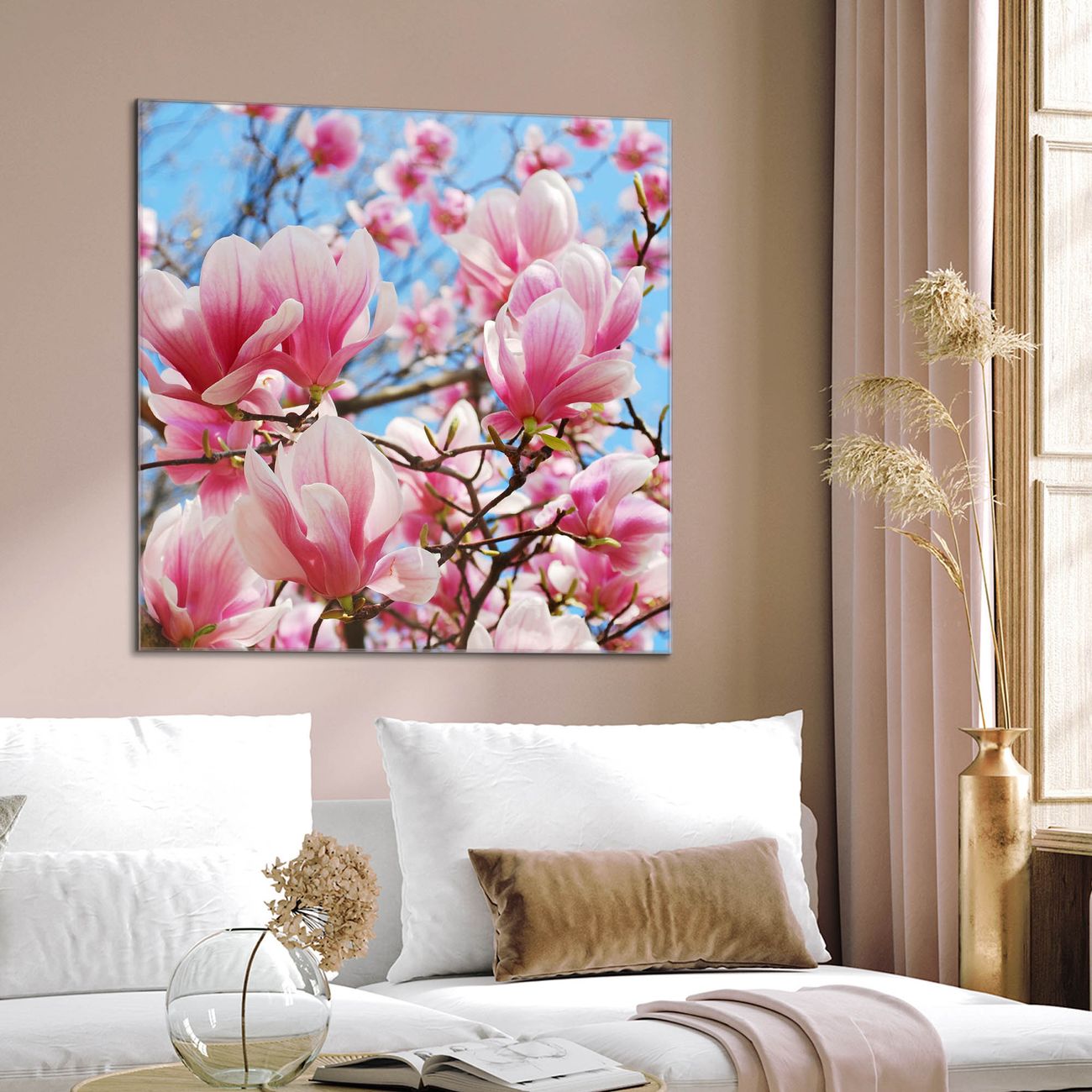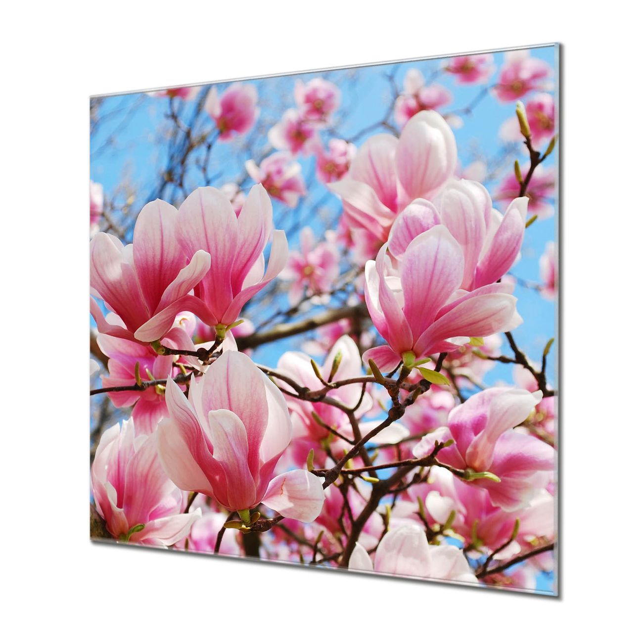 Quadratisches Wandbild aus Glas Magnolienbaum