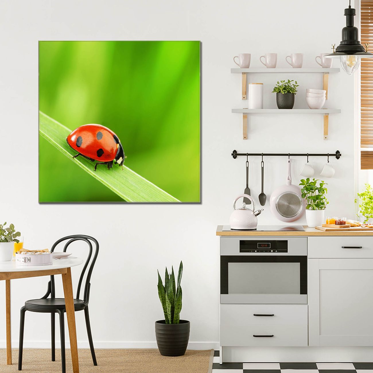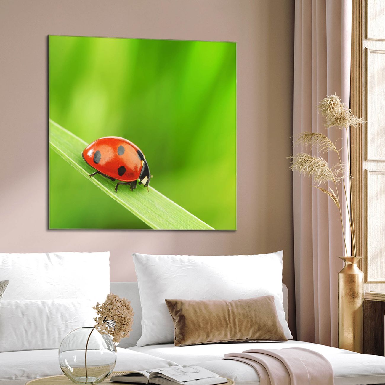 Unsere einzigartigen Glasbilder im Querformat von banjado mit Motiv Marienkäfer sind der absolute Hingucker! Unsere Banjado Glasbilder sind sehr begehrt, weil sie top verarbeitet sind und sich ganz leicht montieren lassen. Schon mit wenigen Handgriffen hängen sie an der Wand und strahlen mit höchster brillianz. Durch die Ramenlose Herstellung schwebt das Echtglasbild förmlich an der Wand. Das Motiv erscheint besonders ausdrucksstark und hochwertig und ist hinter dem Echtglas geschützt.