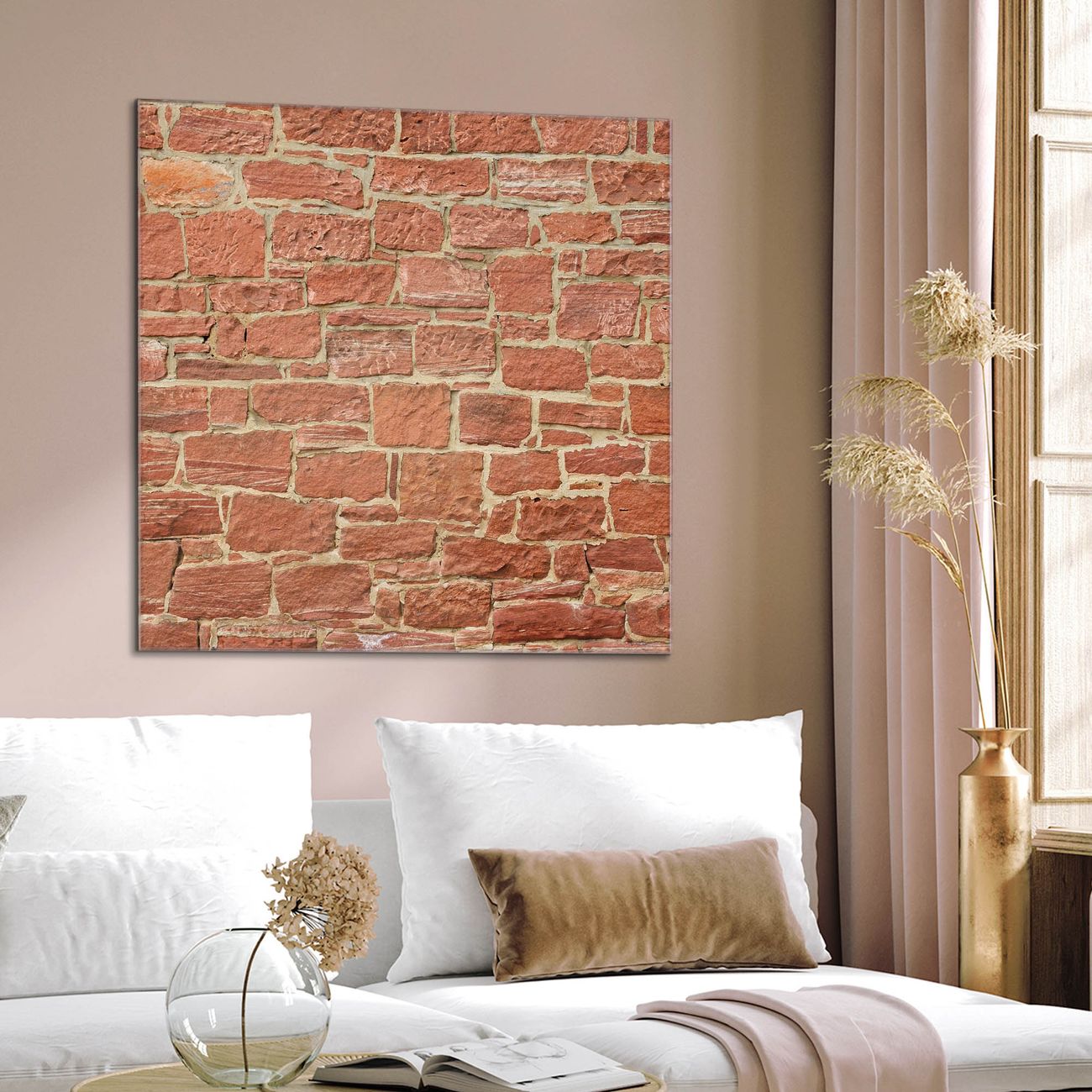 Quadratisches Wandbild aus Glas Mauerwerk