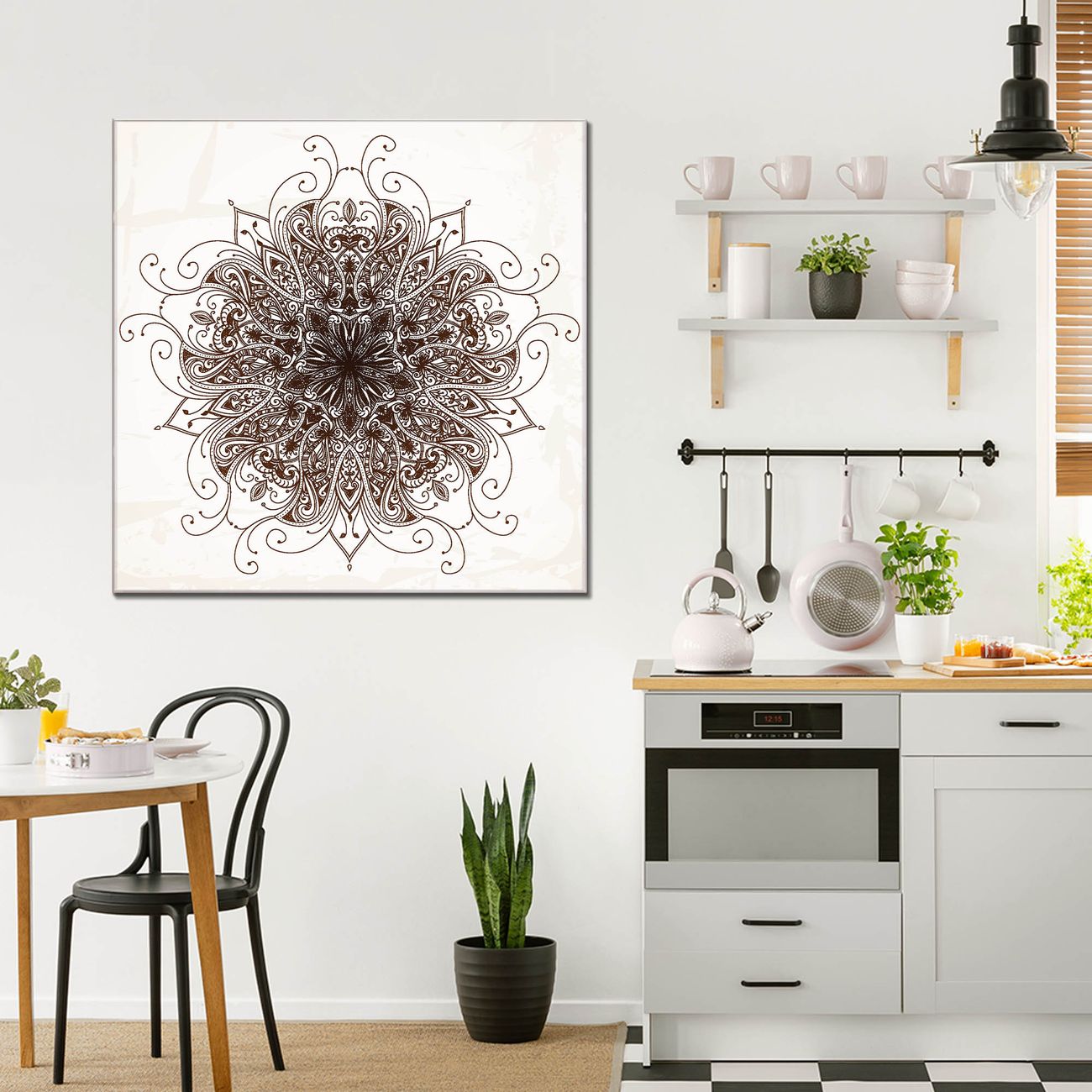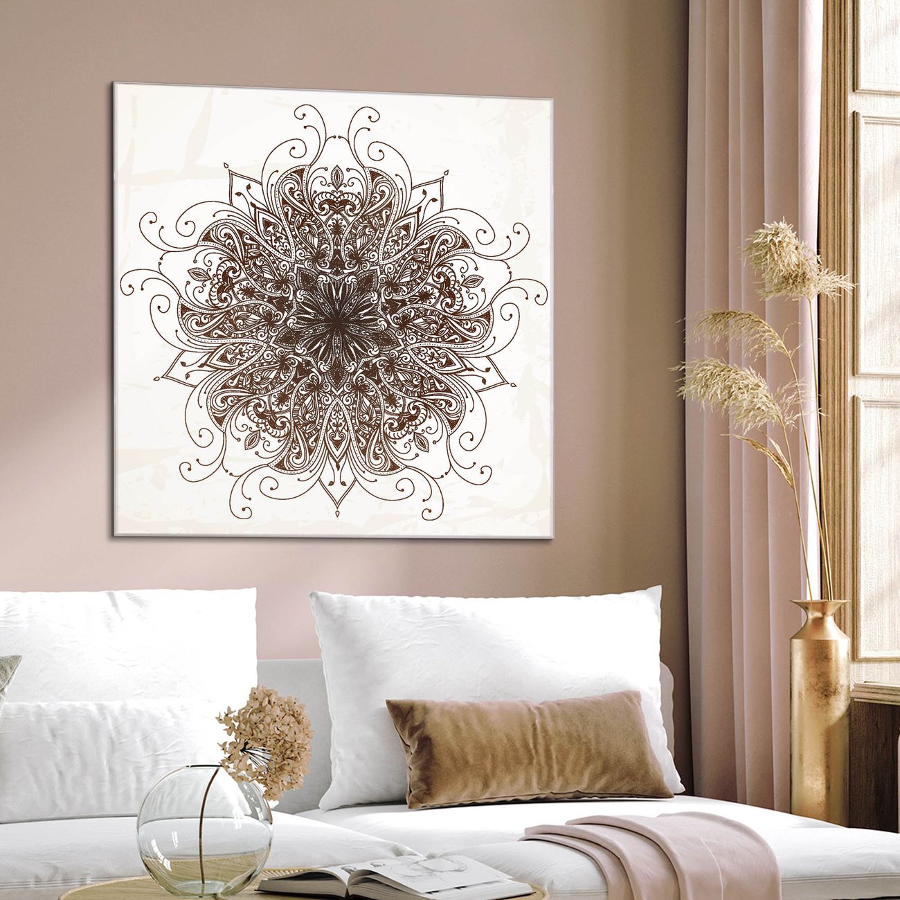 Unsere einzigartigen Glasbilder im Querformat von banjado mit Motiv Mehendi sind der absolute Hingucker! Unsere Banjado Glasbilder sind sehr begehrt, weil sie top verarbeitet sind und sich ganz leicht montieren lassen. Schon mit wenigen Handgriffen hängen sie an der Wand und strahlen mit höchster brillianz. Durch die Ramenlose Herstellung schwebt das Echtglasbild förmlich an der Wand. Das Motiv erscheint besonders ausdrucksstark und hochwertig und ist hinter dem Echtglas geschützt.