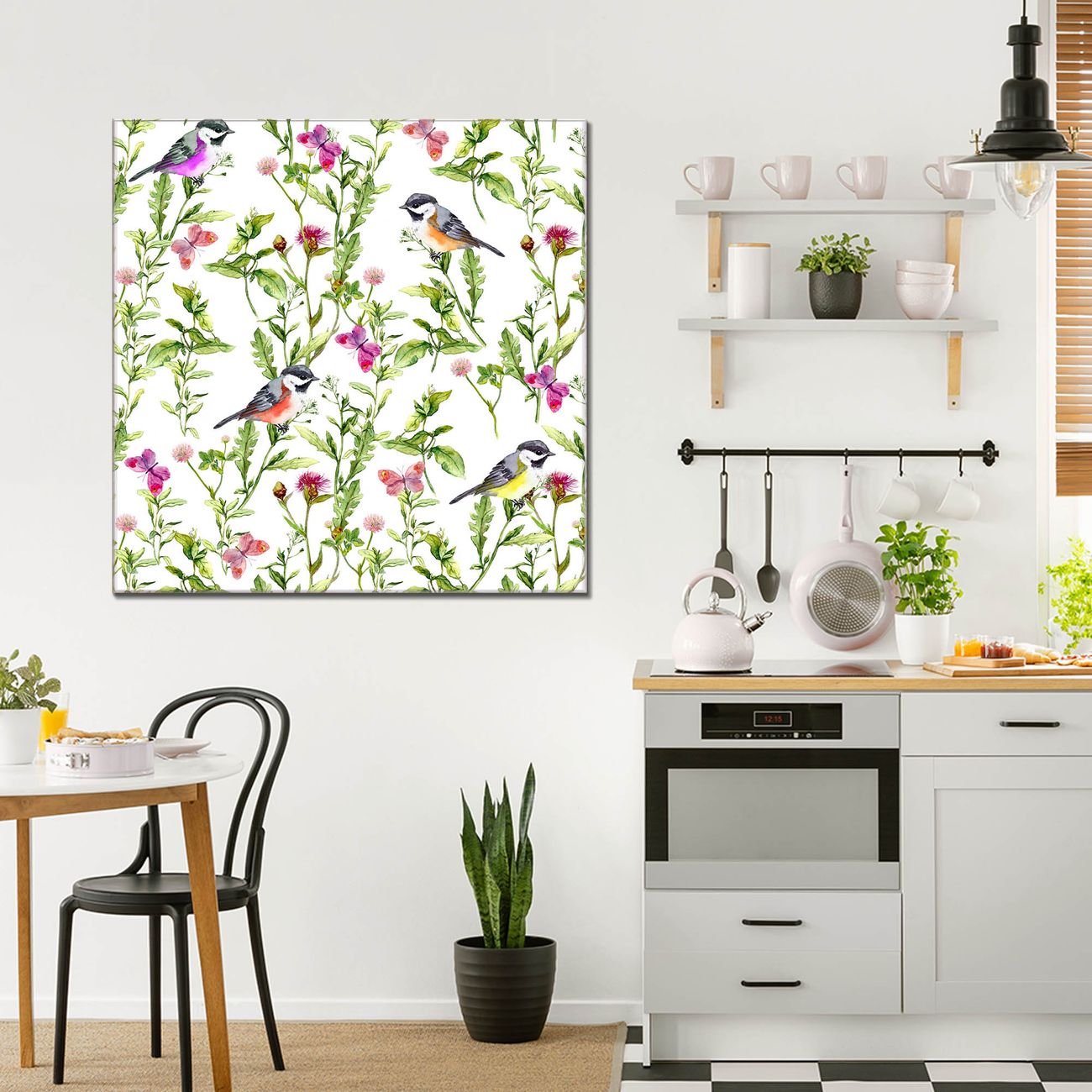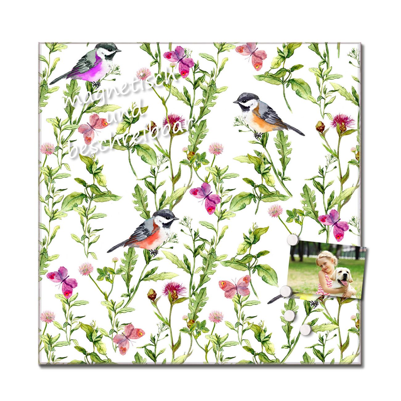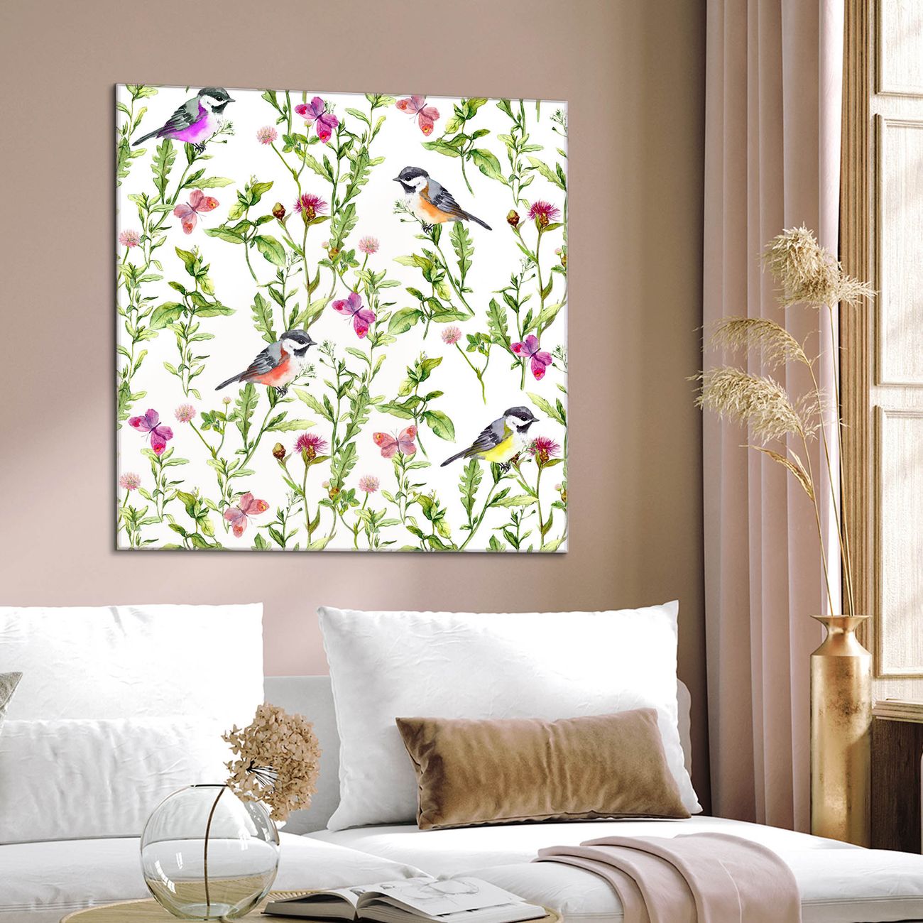 Quadratisches Wandbild aus Glas Meisen im Klee