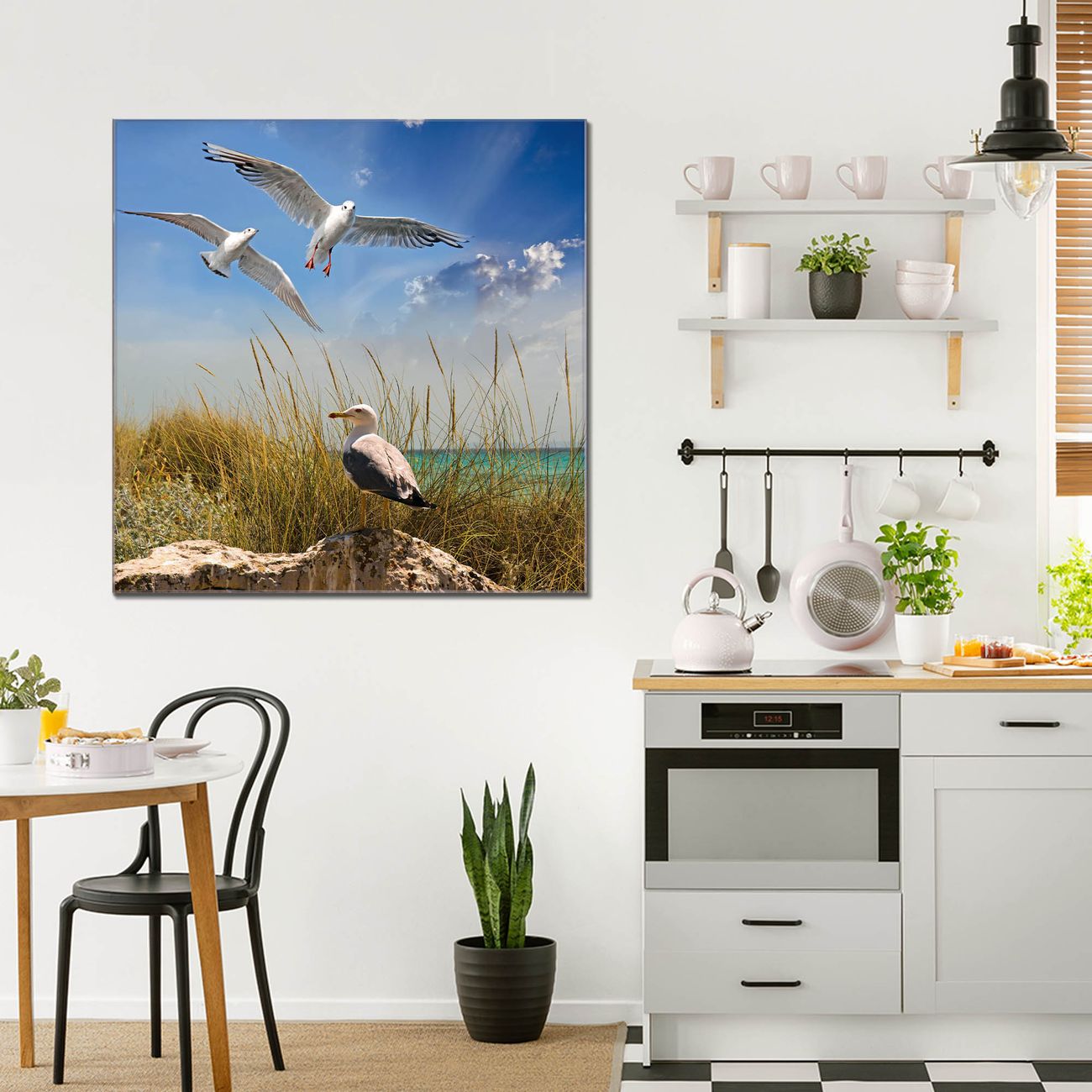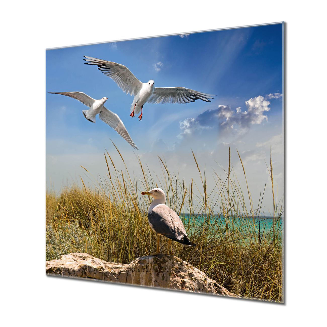 Quadratisches Wandbild aus Glas Möwen